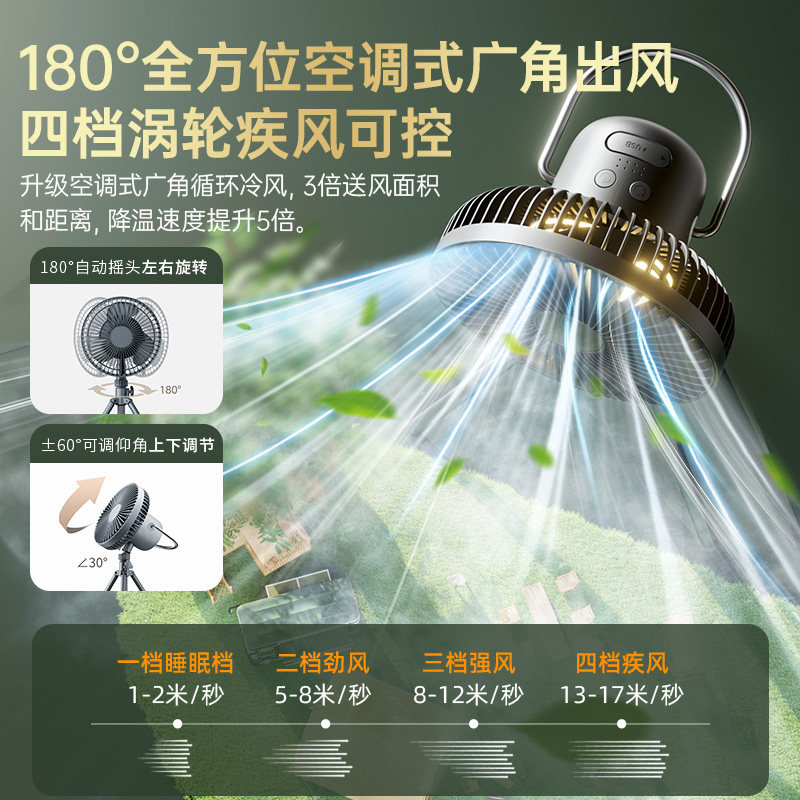韩国户外露营风扇充电款超长续航USB制冷小空调便携式机玩侠无线摇头帐篷钓鱼野营降温神器空调扇冷风宿舍用