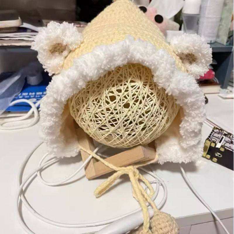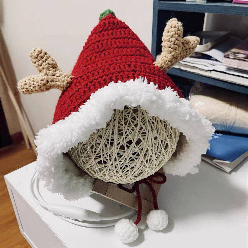 婴儿童宝宝diy帽子手工材料包毛线保暖绒绒鹿熊护耳帽送工具教程