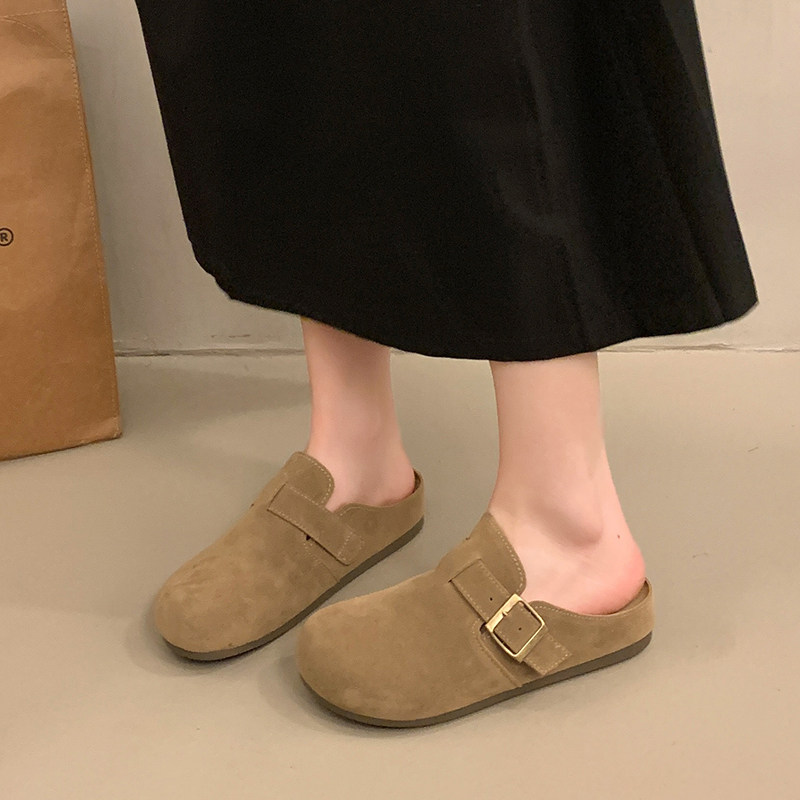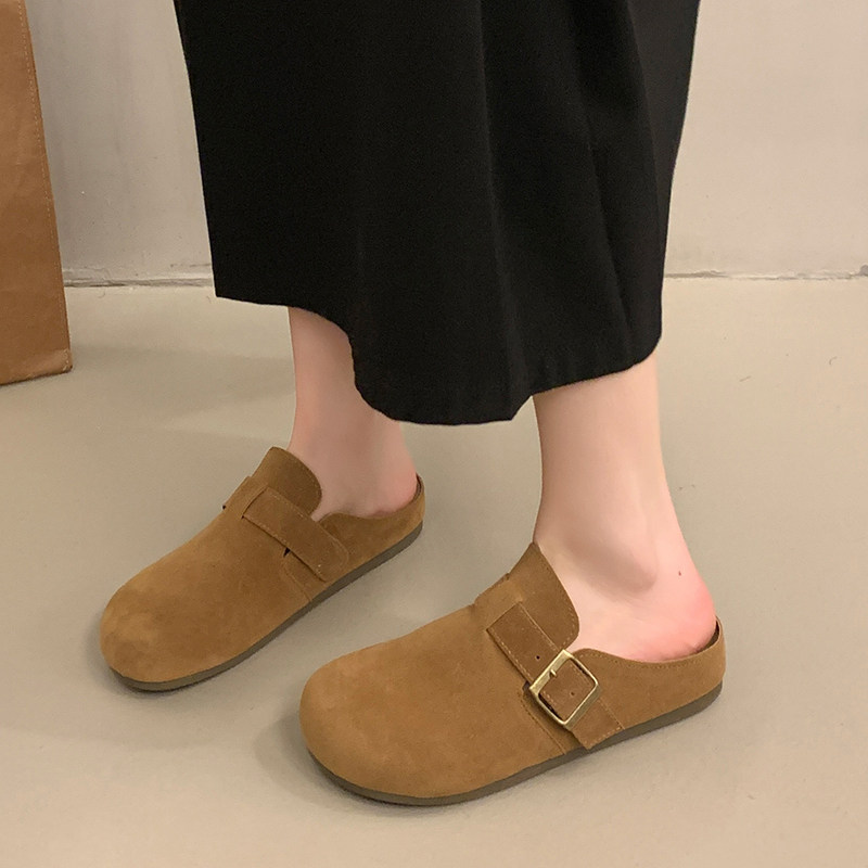 真皮包头拖秋季2025年新款勃肯鞋圆头拖鞋平底外穿休闲半拖懒人鞋