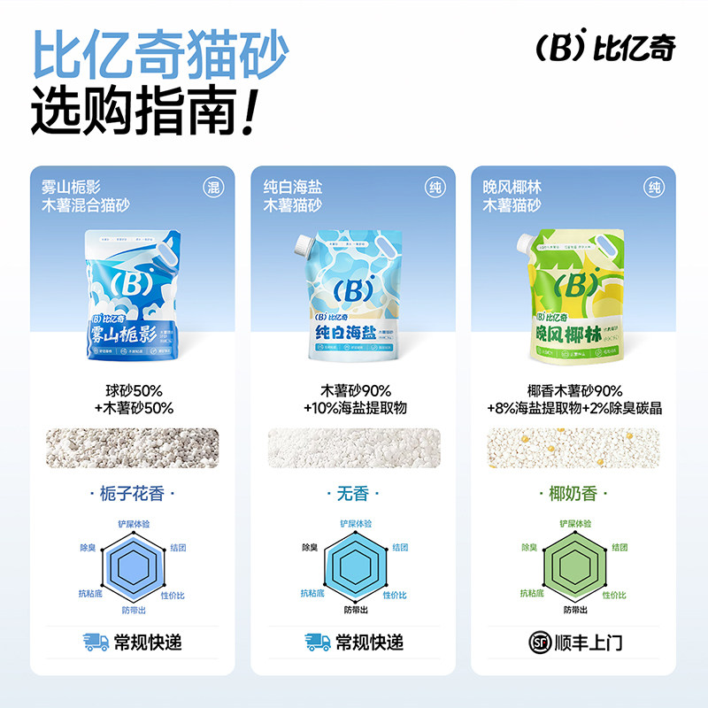 比亿奇木薯混合猫砂除臭无粉尘天然钠基无尘植物豆腐原味不粘底