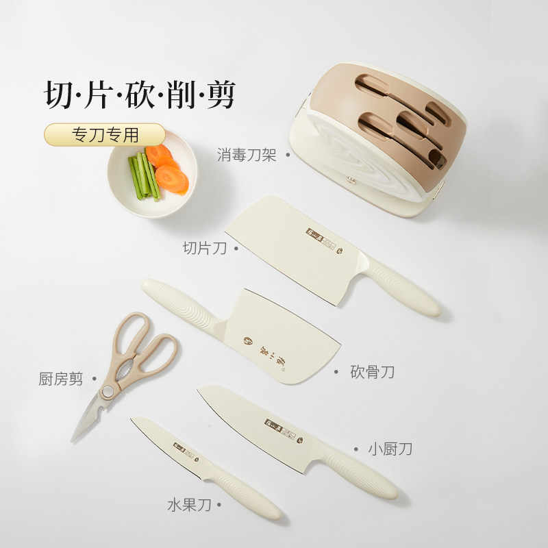 张小泉大师印点赞菜刀除菌刀具套装六件套组合厨房菜刀菜板二合一