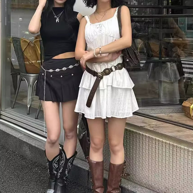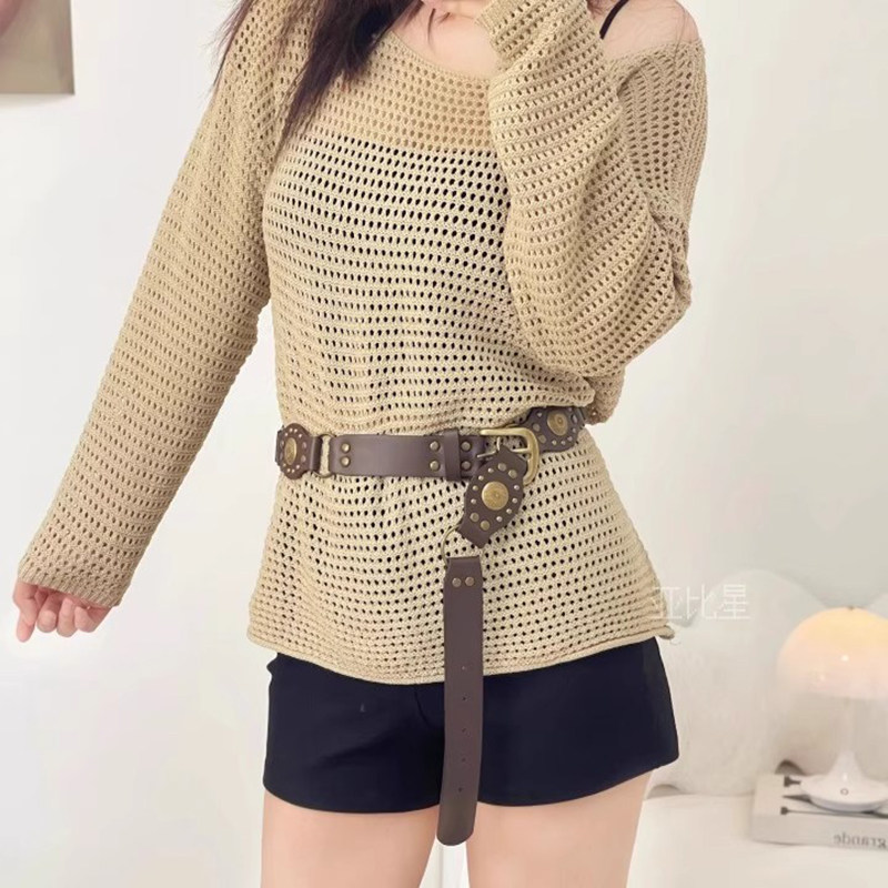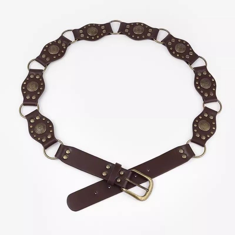 美拉德腰带波西米亚复古美式铆钉棕色皮带腰链配饰裙子民族风腰封