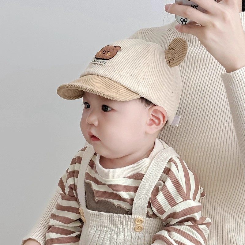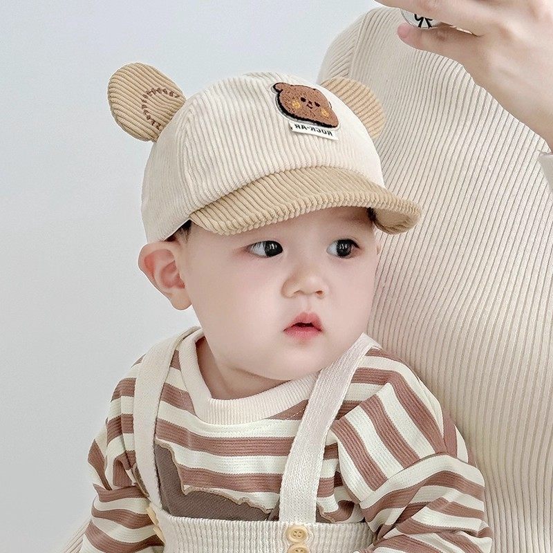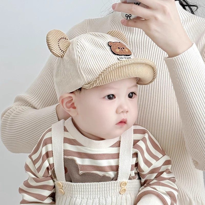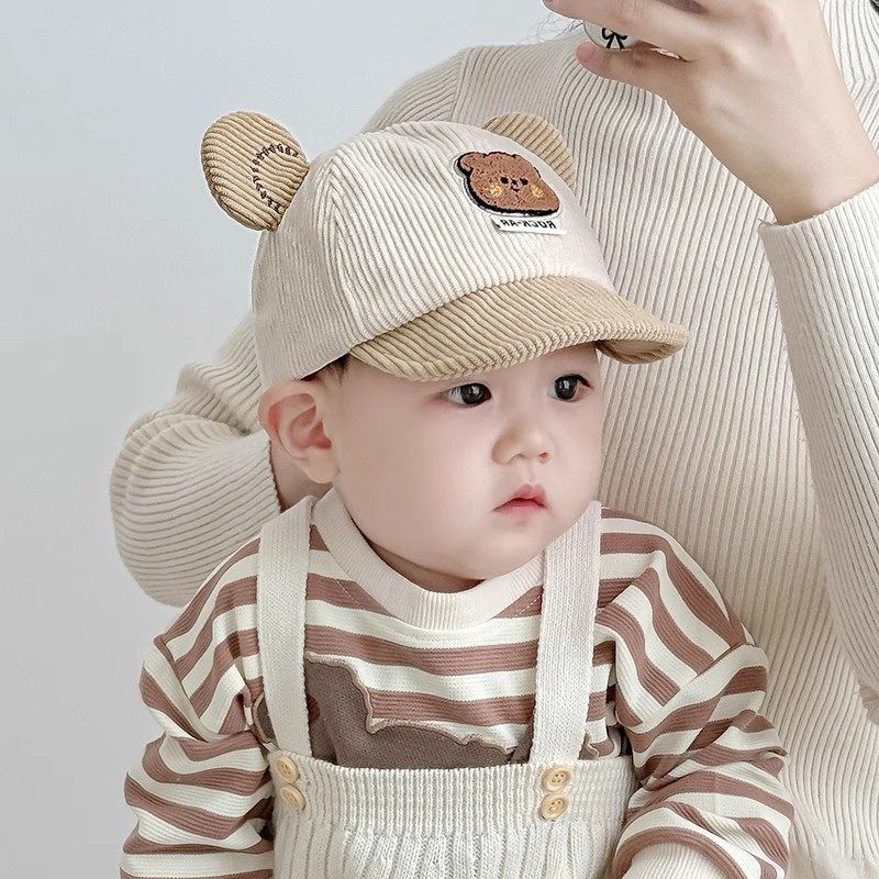 鸭舌帽子春秋季韩版薄男女童可爱小熊防晒灯芯绒婴儿遮阳