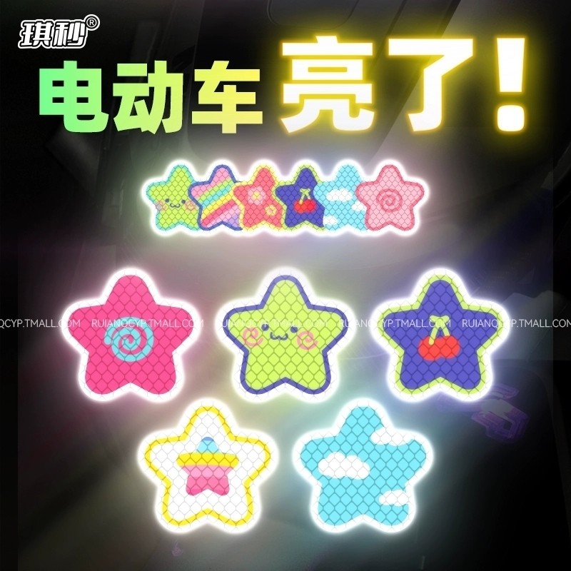 彩色星星电动车夜间反光警示贴摩托汽车贴纸头盔自行车身装饰防水