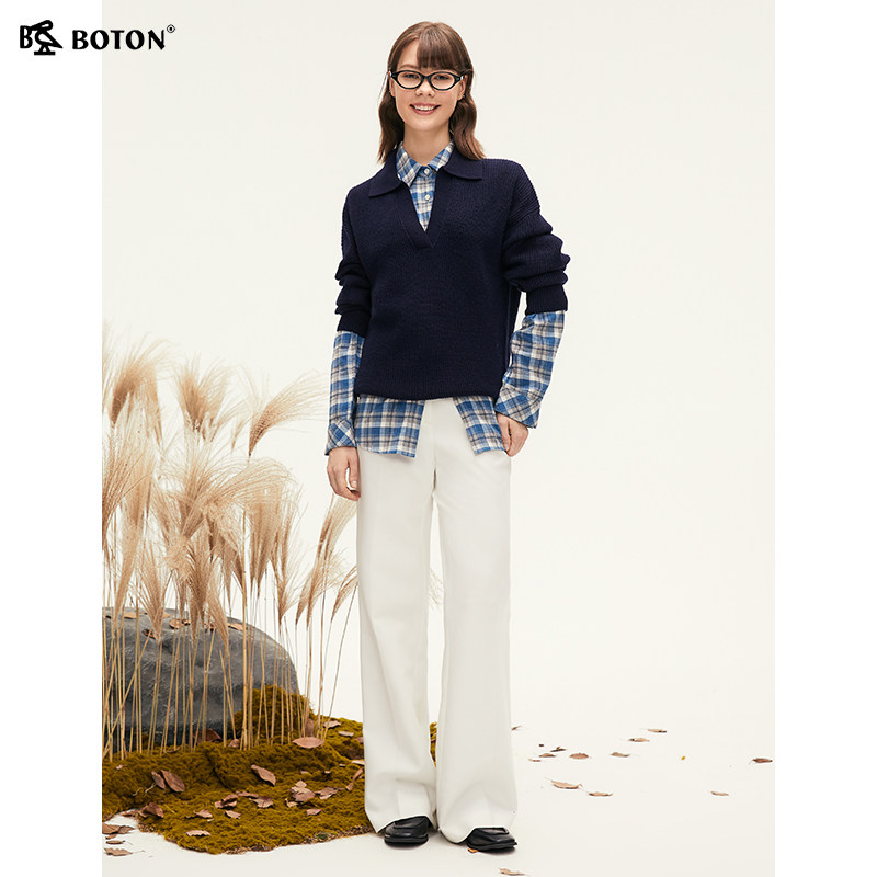 森马长袖衬衫女冬季菱形格V领短背心易打理衬衣俏皮学院风两件套