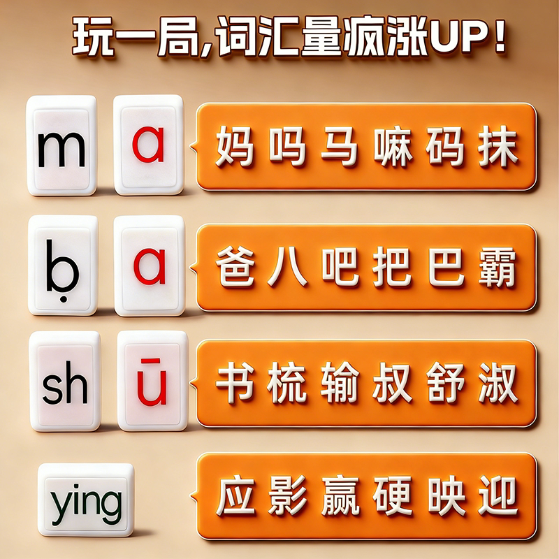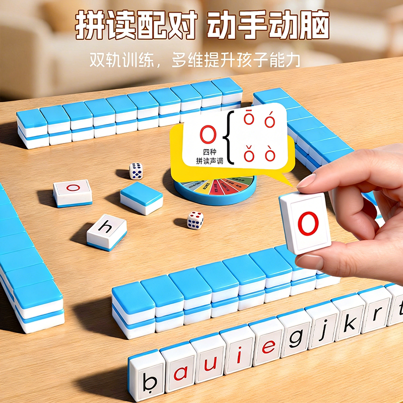 汉语拼音麻将字母儿童趣味拼读幼儿园小学一年级益智玩具学习桌游