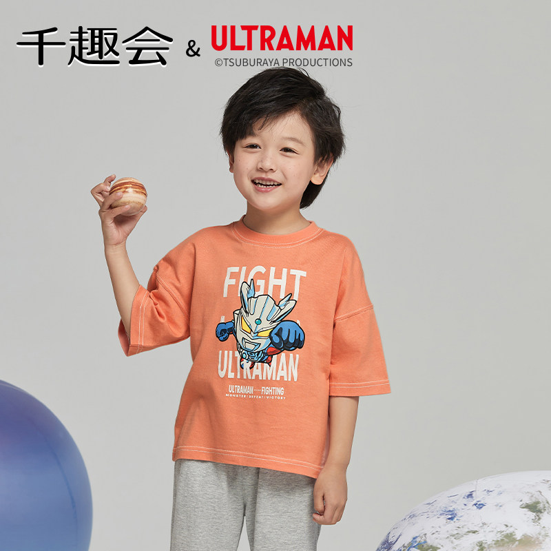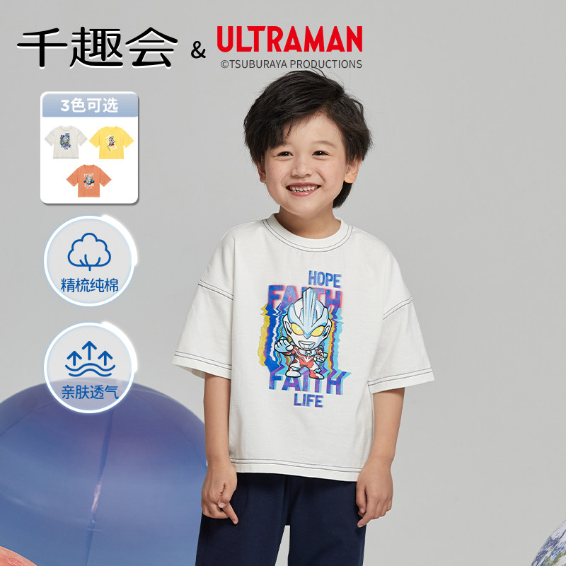 【奥特曼联名】千趣会童装夏装时尚落肩棉质男童女童短袖T恤