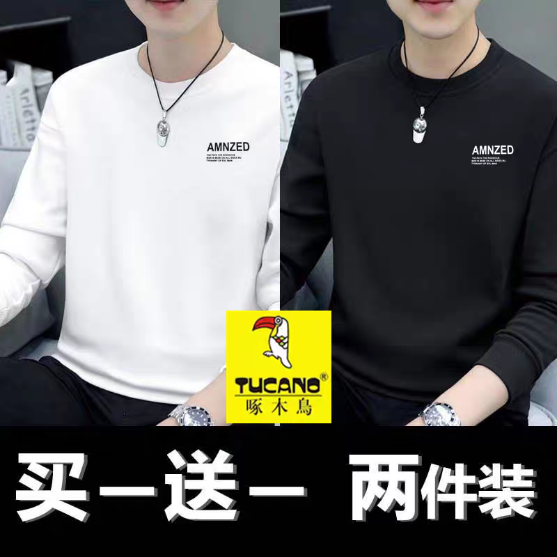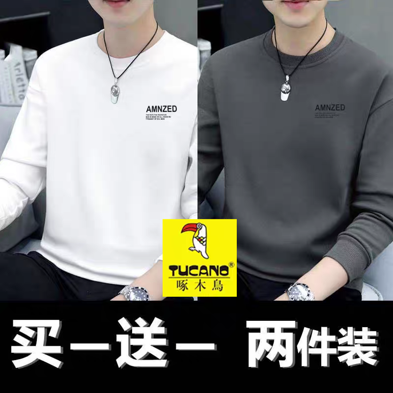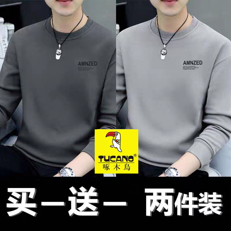 啄木鸟纯棉卫衣男新款秋冬季圆领宽松百搭长袖男士T恤打底衫潮