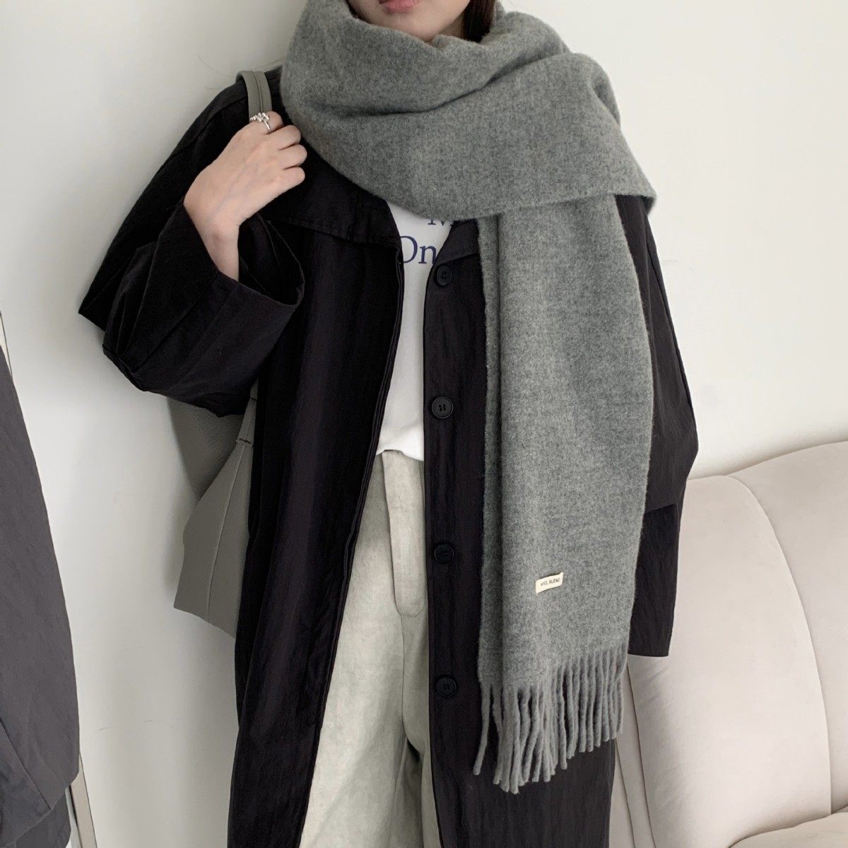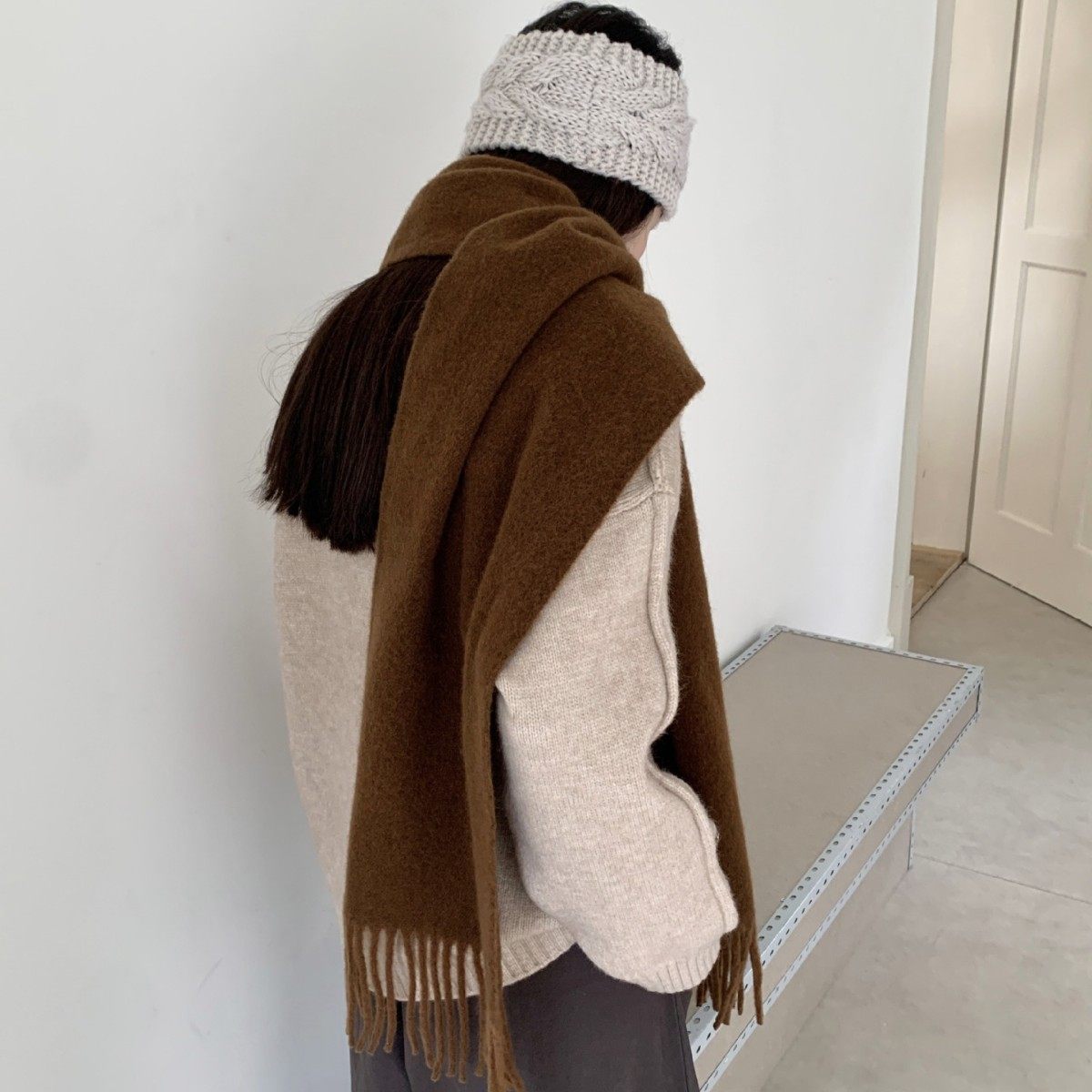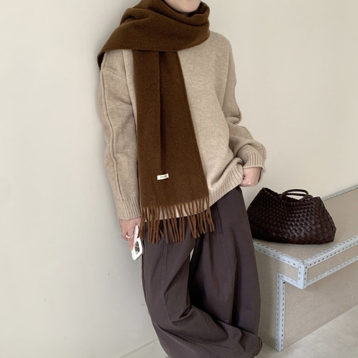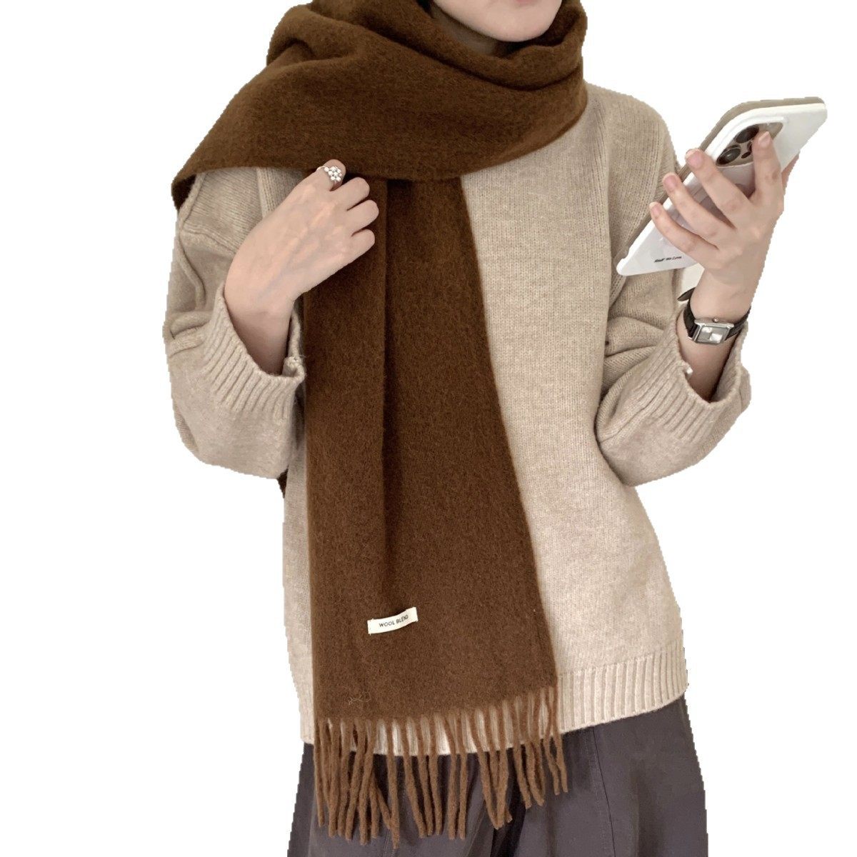 稻草人棕色羊毛混纺围巾女冬季2025新款韩系百搭情侣披肩保暖围脖