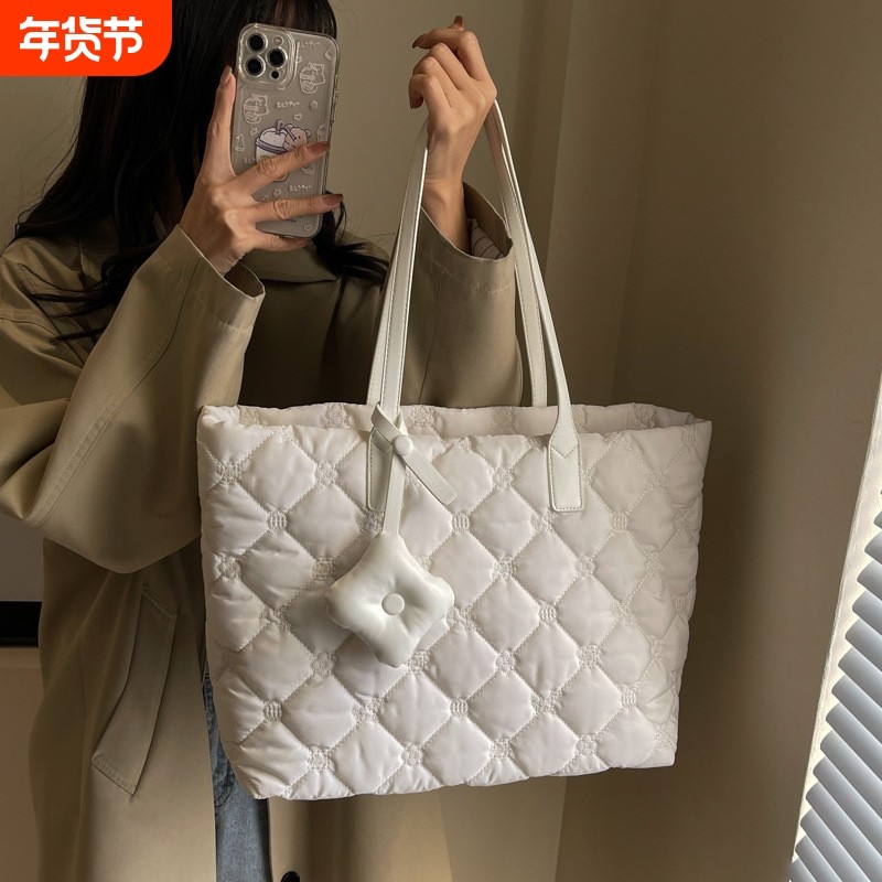 女包高颜值羽绒服包包潮流秋冬新款大容量通勤单肩托特包白色