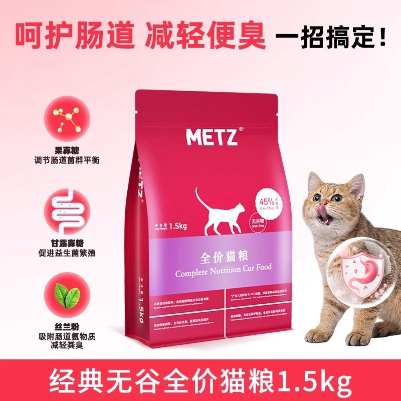 METZ玫斯猫粮6.8kg全价成猫幼猫专用益生元鲜肉粮蓝猫枚斯3磅生鲜