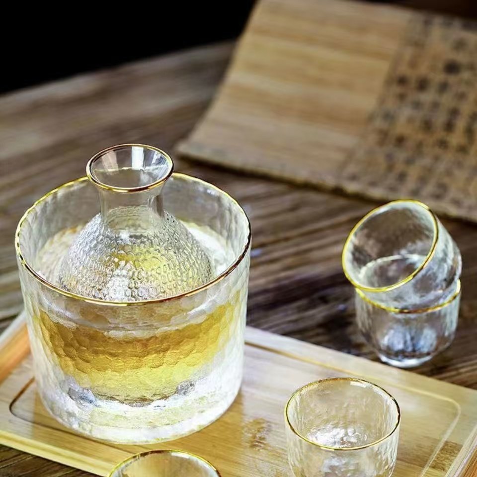 日式米酒罐容器套装玻璃黄酒温酒器烫酒壶家用一两白酒杯锤纹酒具
