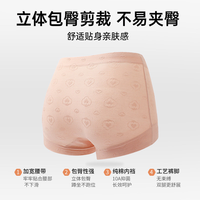 润微10A抑菌100%纯棉裆高腰收腹3条无痕提臀舒适平角内裤女包臀