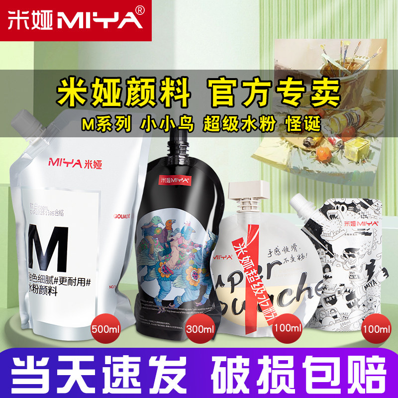 米娅水粉M系颜料补充装颜料补充包米亚100ml袋装色彩重彩s系樱花红美术生专用色彩白色钛白挤压式300ml珍珠白