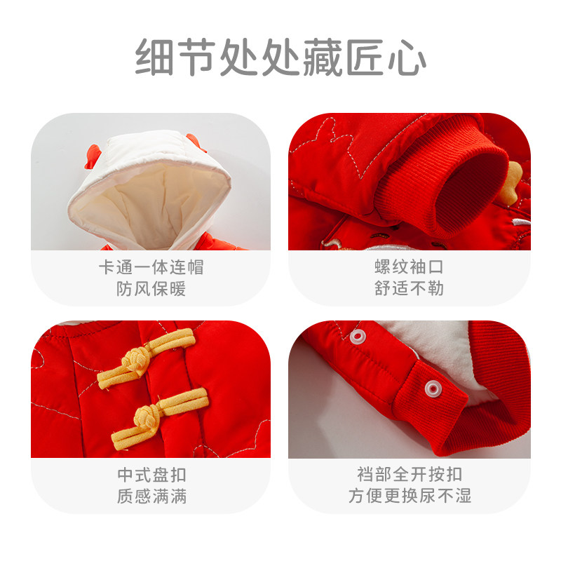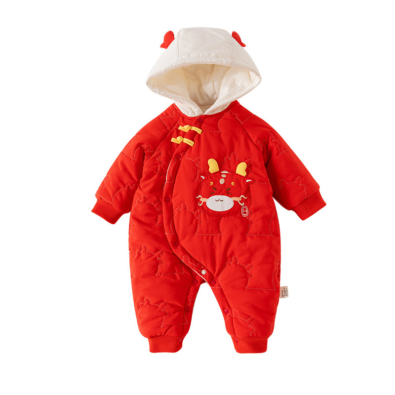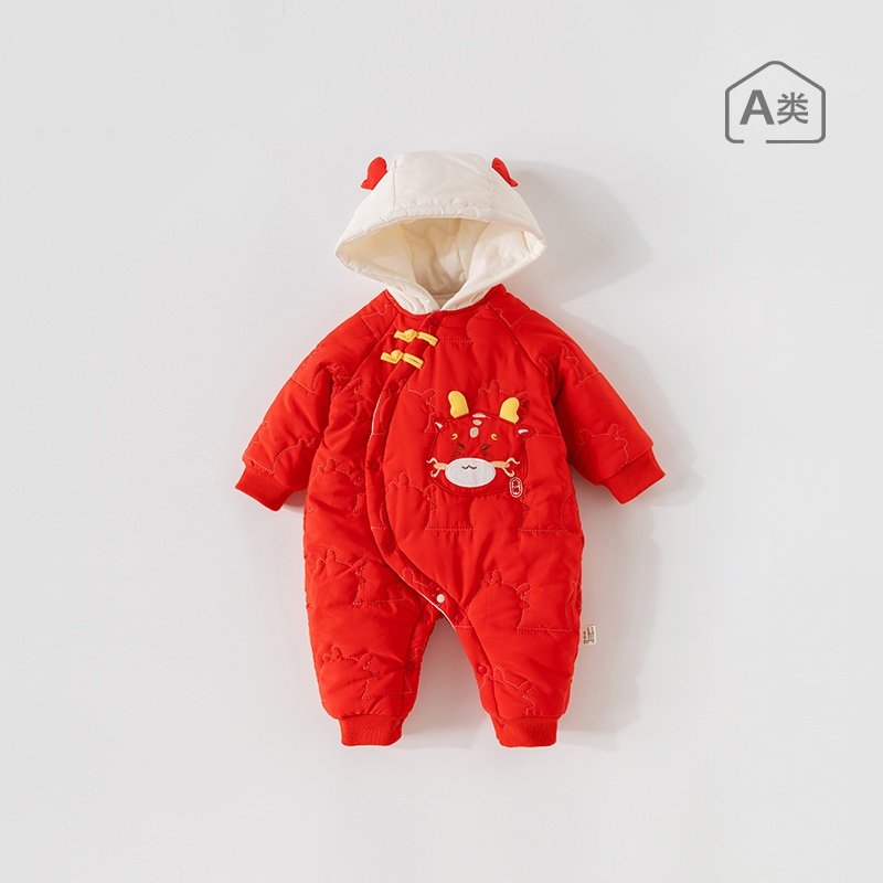 婧麒满月婴儿衣服秋冬百天新生儿连体衣龙年红色哈衣宝宝拜年衣服