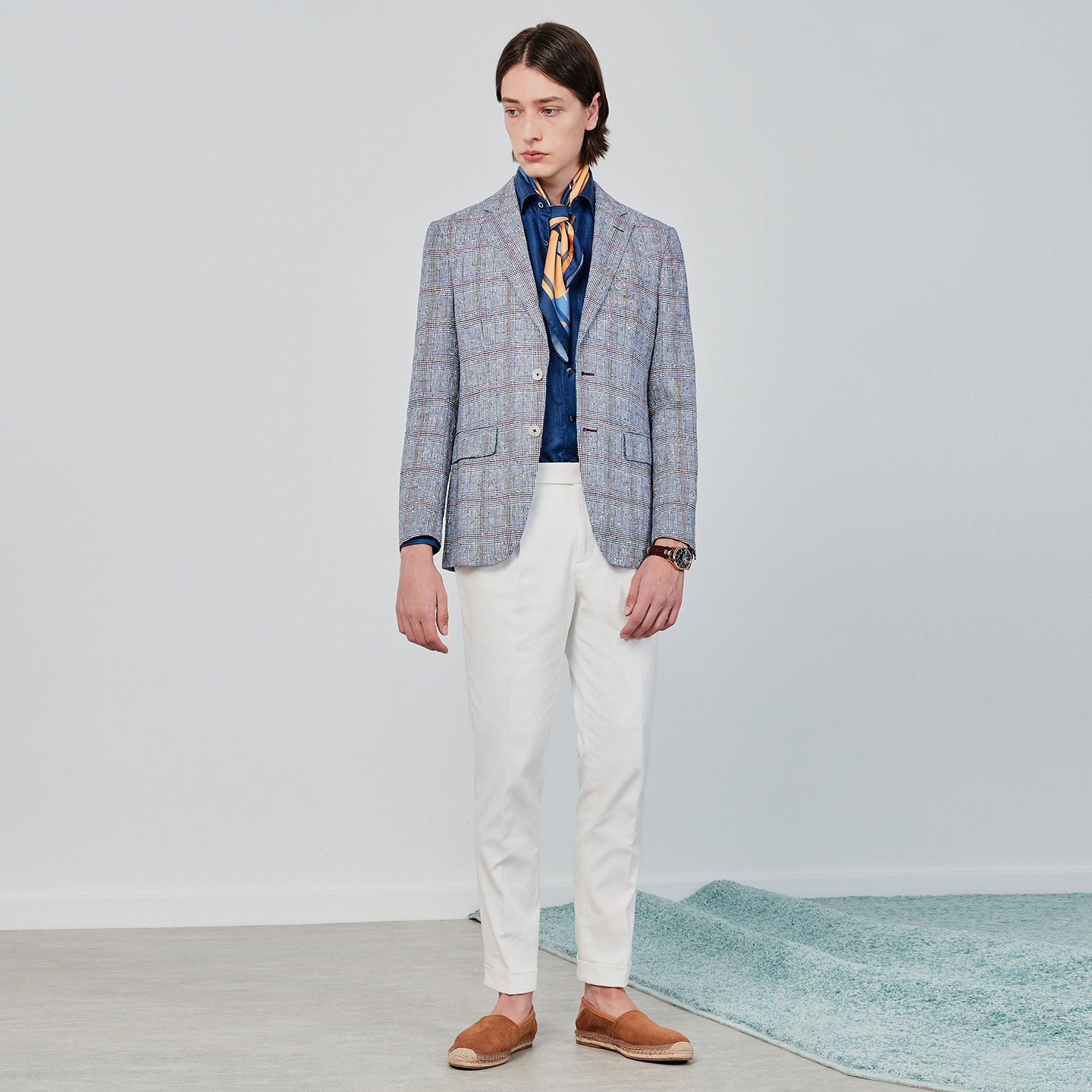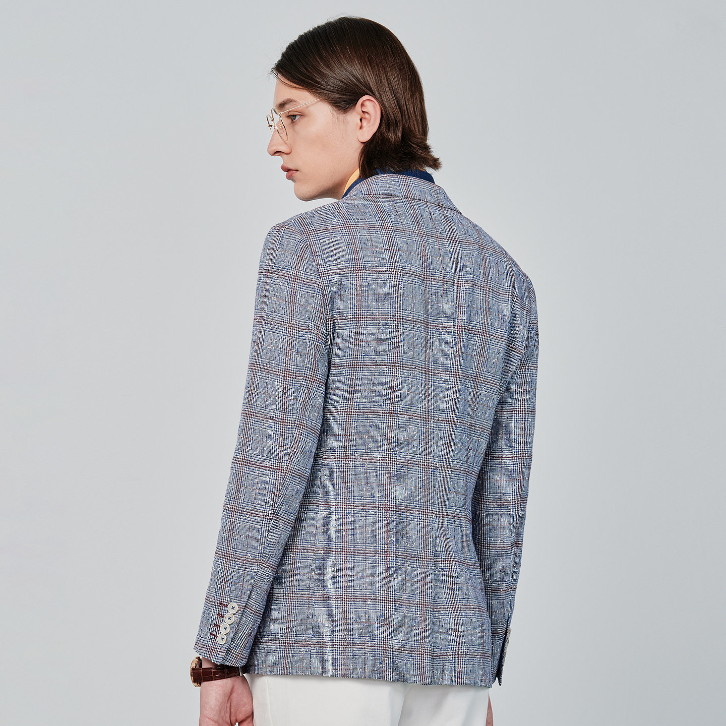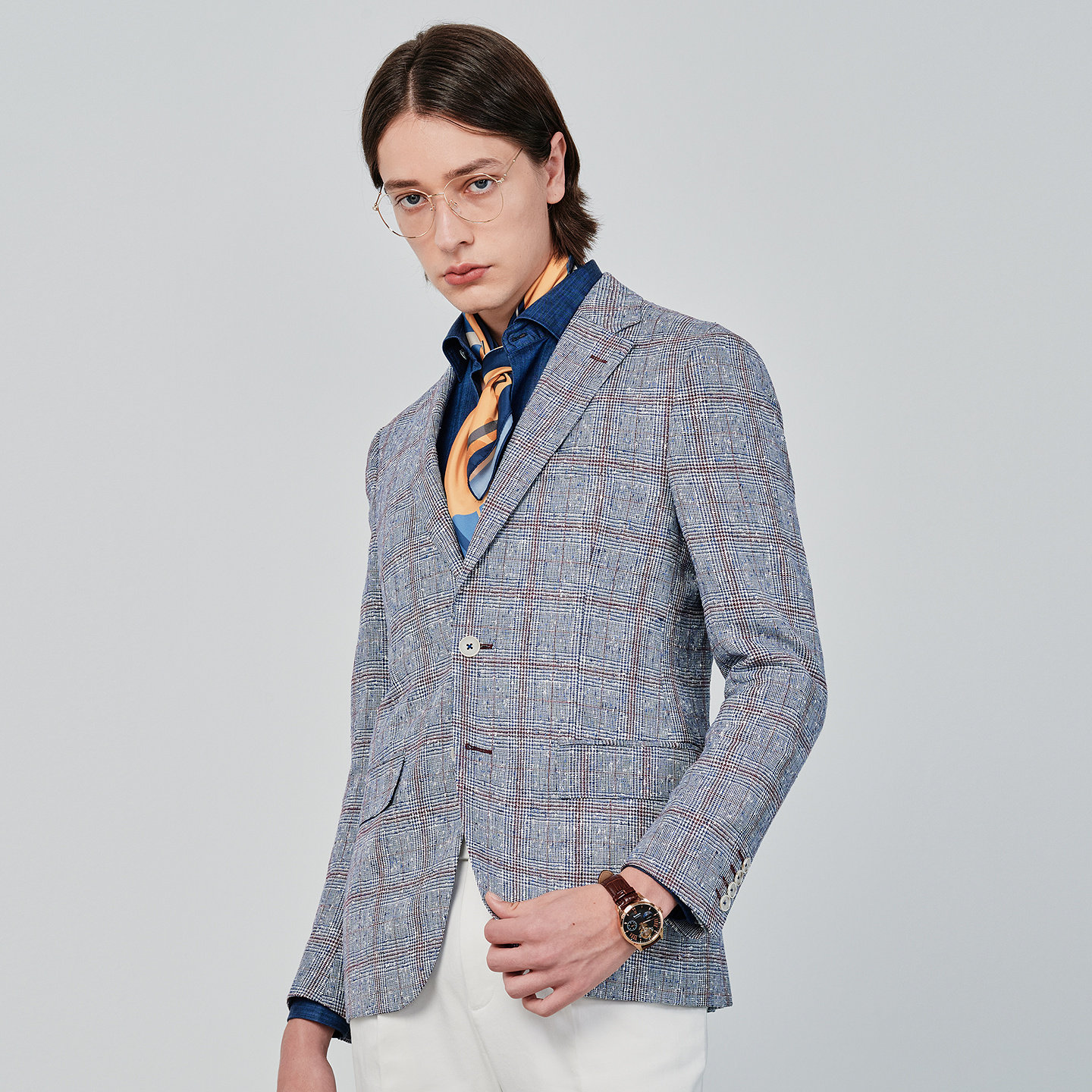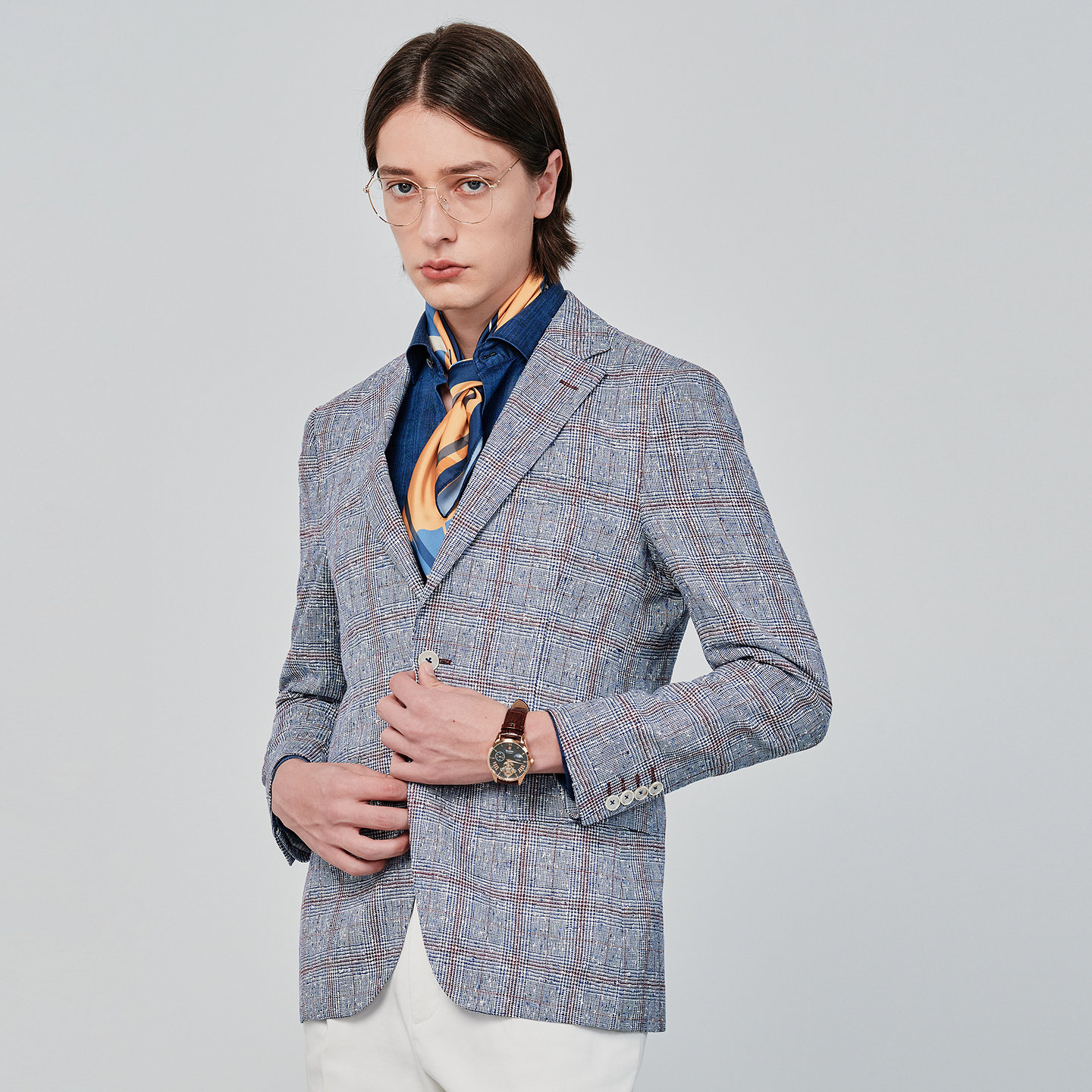 JODOLL乔顿【进口面料】格纹单西服男士羊毛柞蚕丝亚麻小西装外套