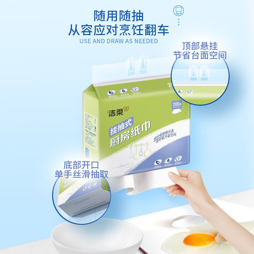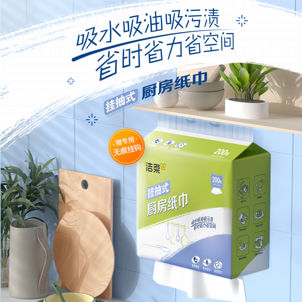 洁柔厨房纸悬挂式厨房专用纸吸油吸水抽纸一次性懒人抹布200抽4提