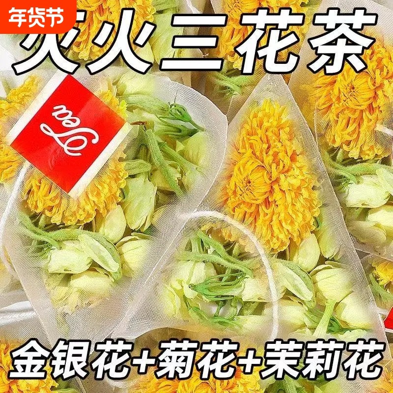 金银花菊花茶茉莉花去上火下肝火下凉茶肝泡水养生茶冲泡好喝健康