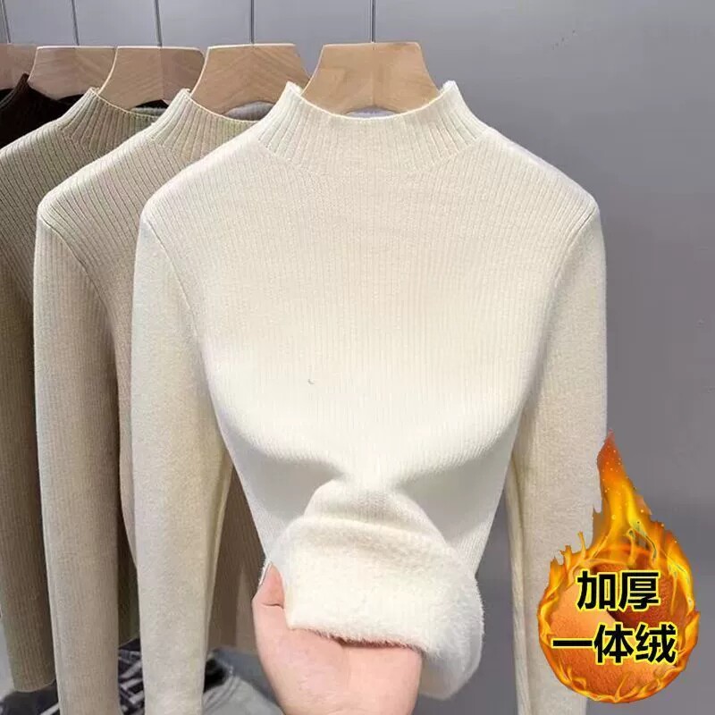 半高领德绒内搭打底衫女秋冬2025新款韩版洋气时尚上衣加绒保暖