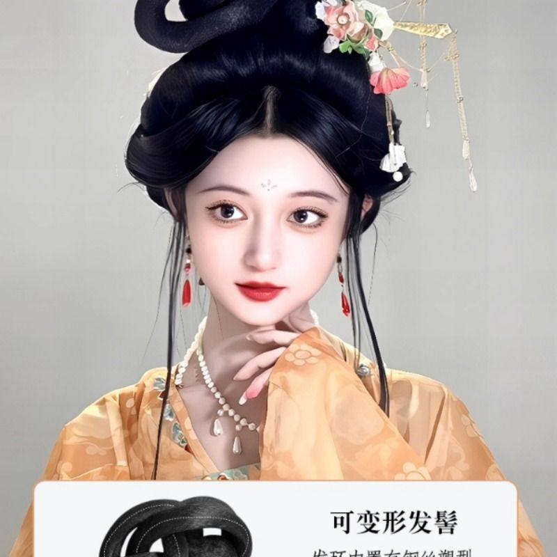 汉服假发一体式古装全套头饰古风全发丝唐风盘发发髻垫发包造型女