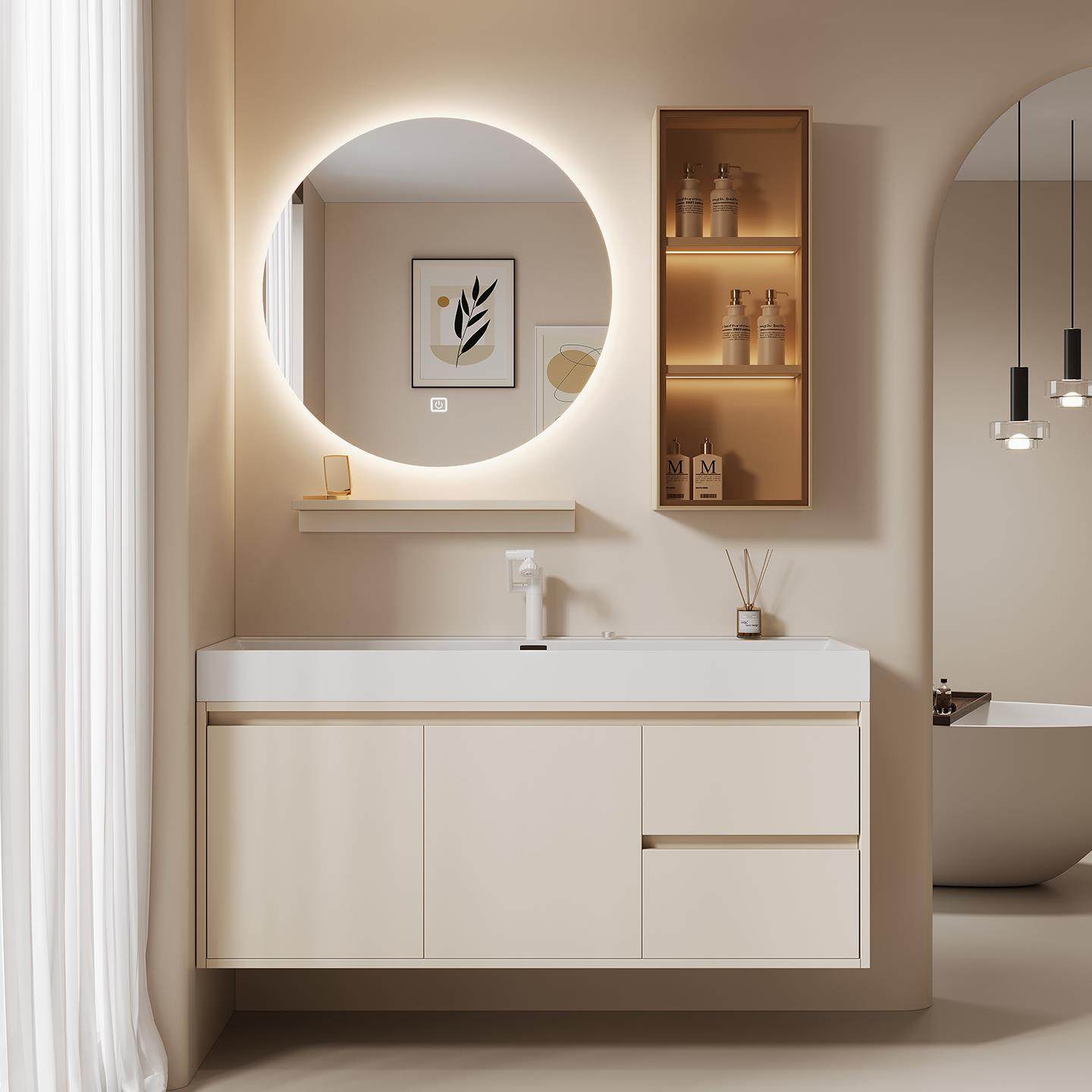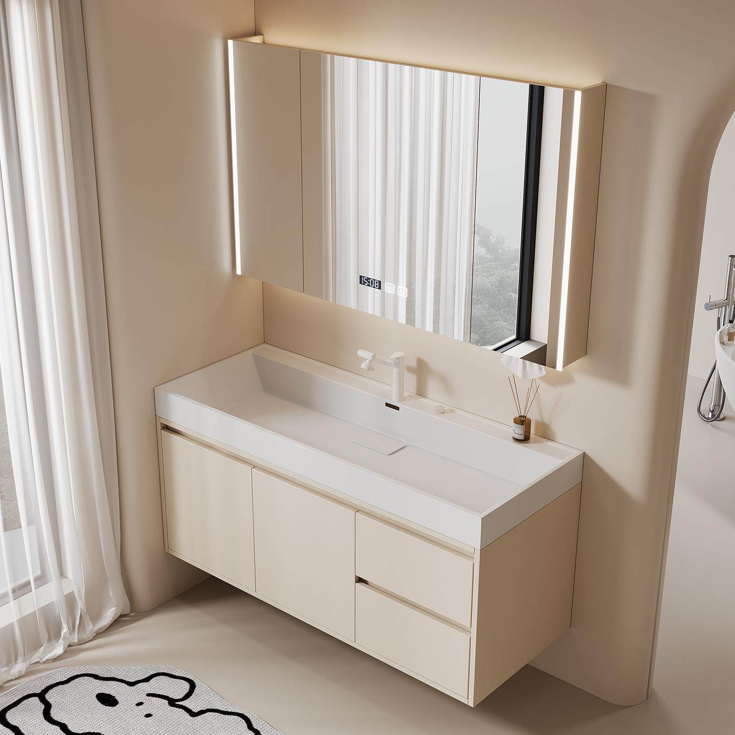 轻奢多层实木纳米微晶石一体盆浴室柜组合卫生间洗漱台洗脸台盆