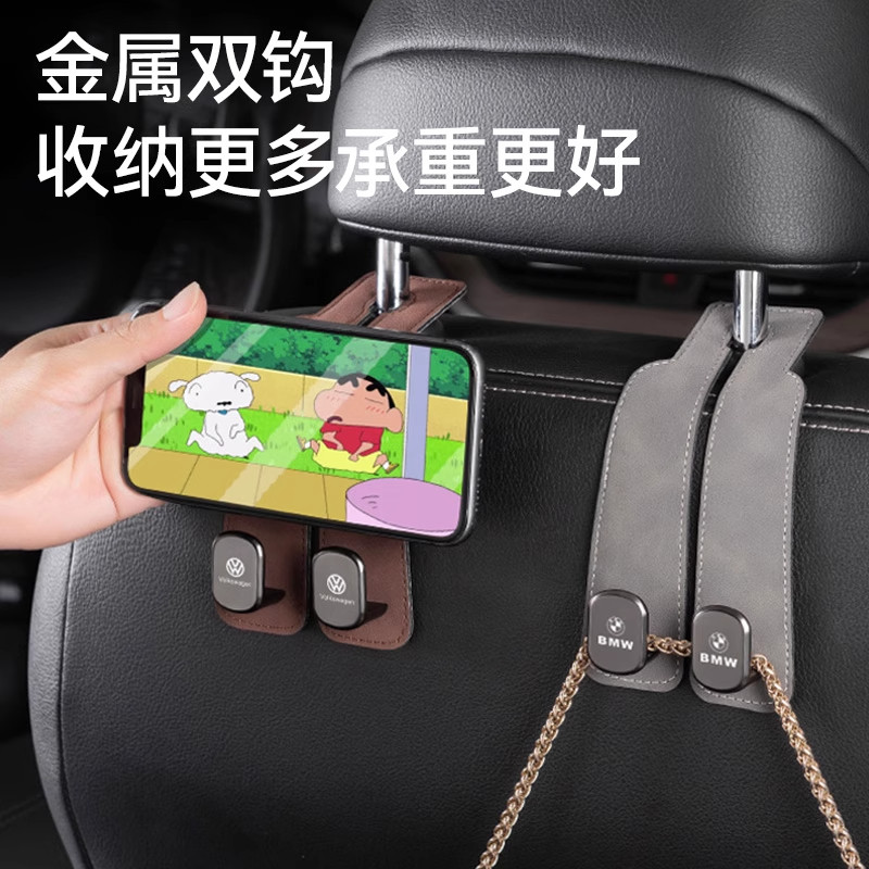 汽车挂钩车载座椅背升级隐藏双挂钩翻毛皮后排车内用包包储物挂钩