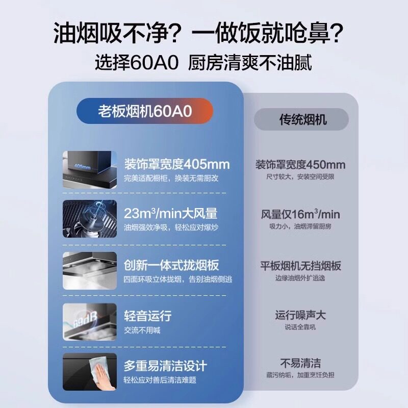 老板星辰60A0烟灶套装大吸力油烟机燃气灶厨房家用套餐官方旗舰店