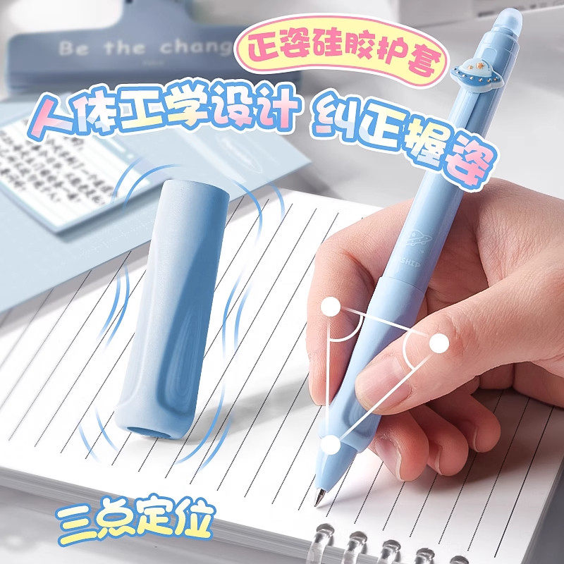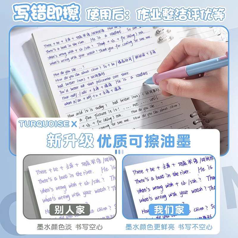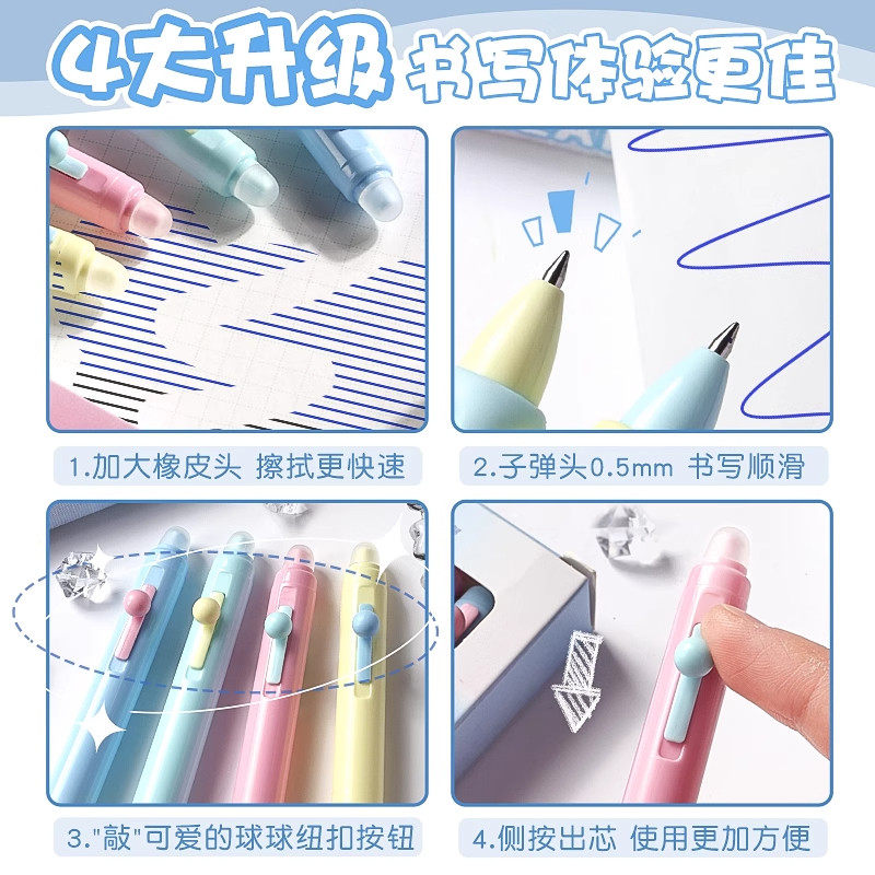 快乐多巴胺可擦笔小学生专用正姿热敏按动中性笔高颜值魔力擦蓝色刷题笔晶蓝圆珠三年级覆写笔魔易擦黑色水笔