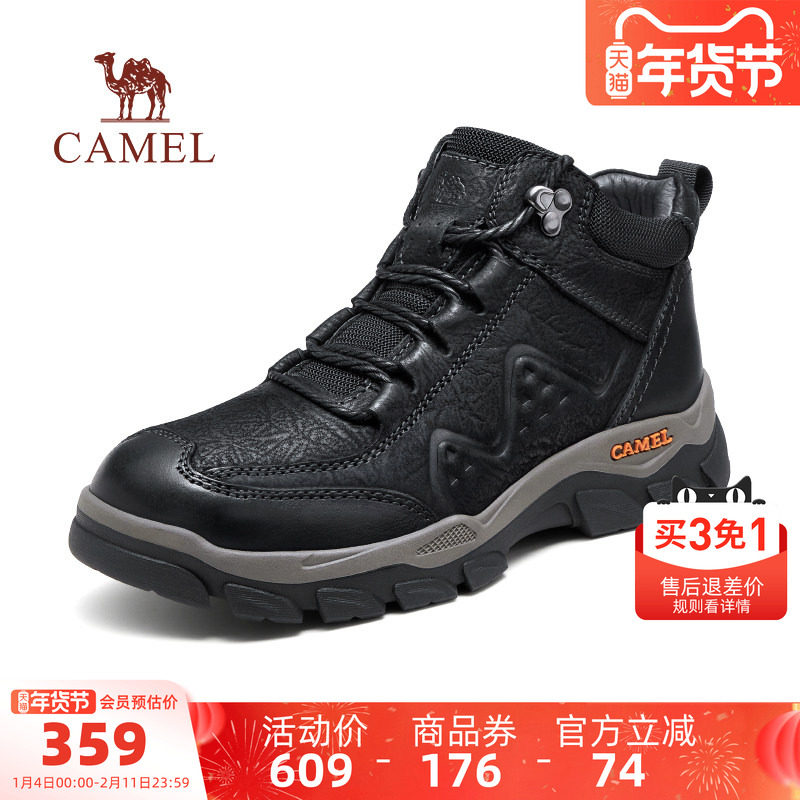 骆驼男鞋冬季新款高帮鞋加绒保暖东北雪地靴男棉鞋户外徒步工装靴