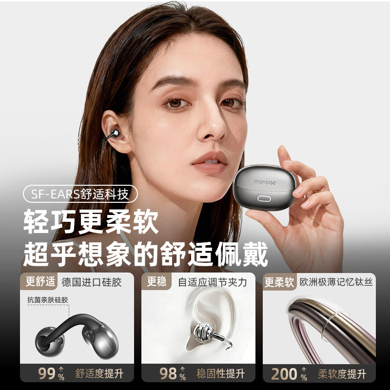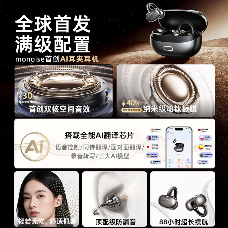摩因Q15耳夹式AI翻译蓝牙耳机2026新款开放无线气骨传导降噪运动