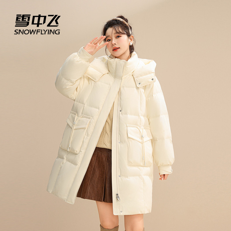 雪中飞2025冬新款女士中长款羽绒服连帽保暖加厚公主甜美纯色外套