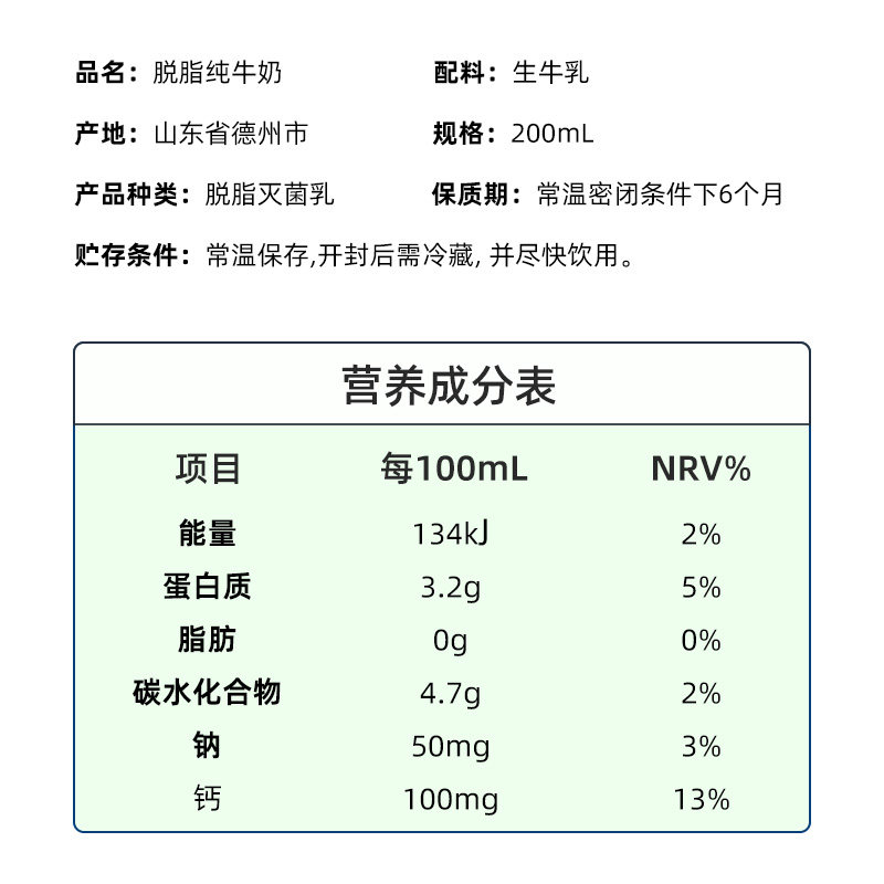 视界牧业脱脂纯牛奶200ml*6盒散装早餐奶营养生牛乳蛋白质常温
