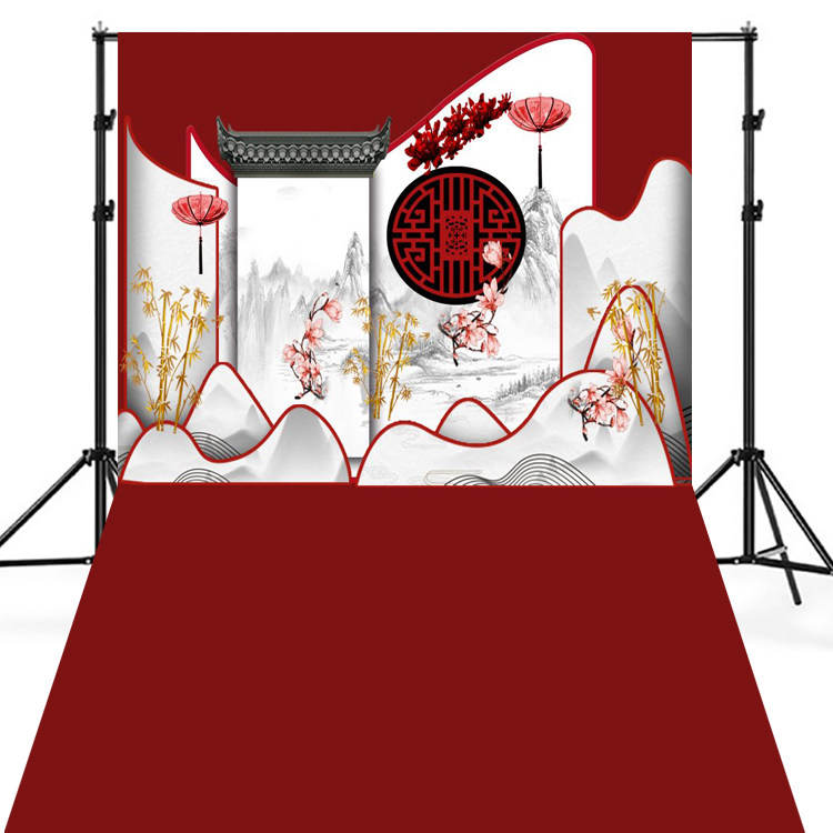 全家福古装古典背景布网红直播3d拍照背景布影楼婚纱国风摄影背景
