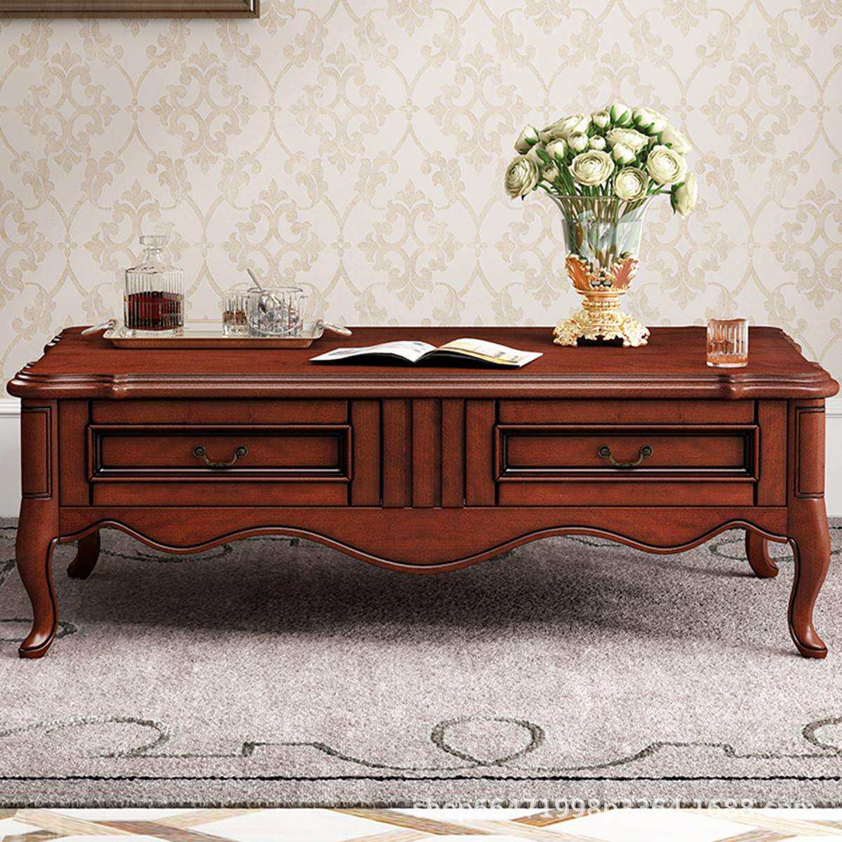 美式实木茶几电视柜组合桃花芯木客厅欧式小户型简约现代客厅家具