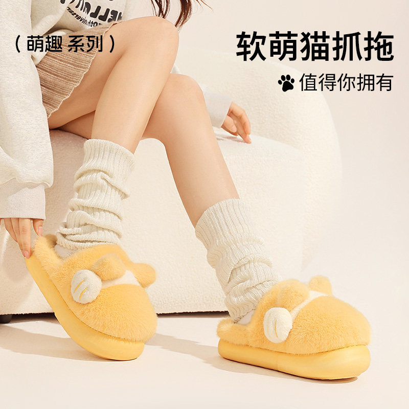 可爱猫爪棉拖鞋女士2025冬季新款居家室内毛绒绒厚底保暖棉拖女款