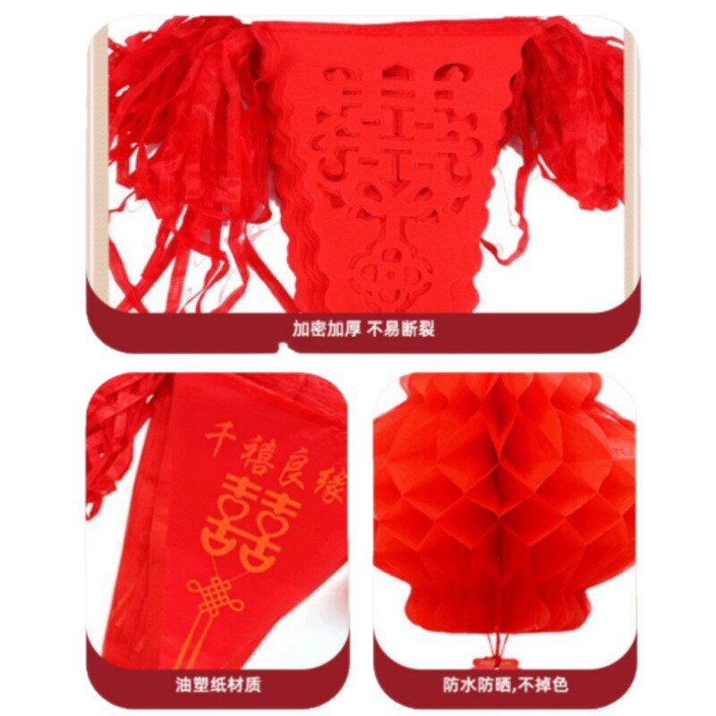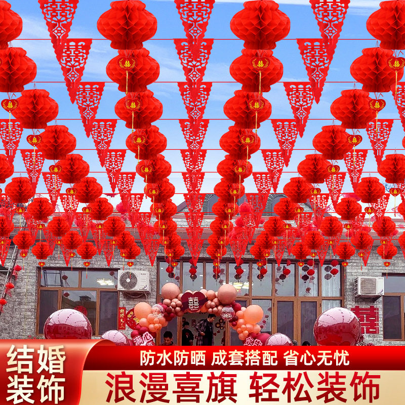 婚庆彩旗院子装饰农村灯笼拉花婚房布置结婚用品氛围室外装扮气氛