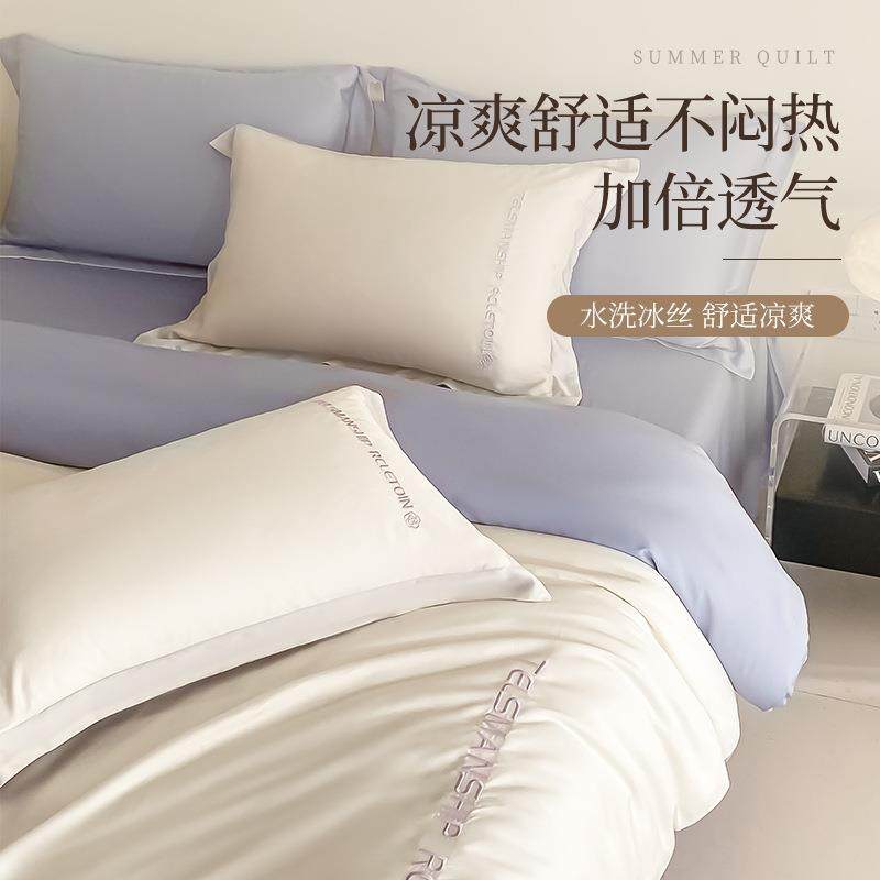 夏季冰丝四件套轻奢三件套凉感丝床单被套床笠款丝滑学生裸睡床品