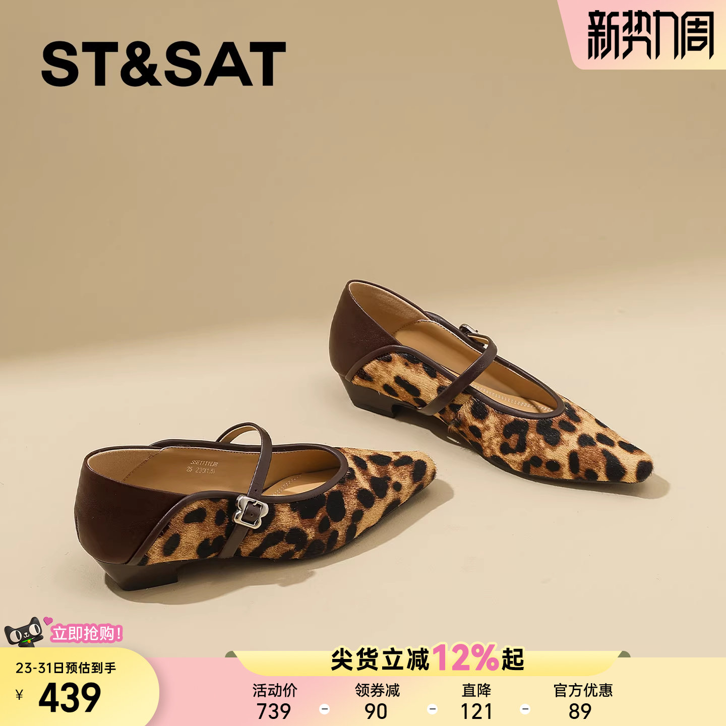 星期六英伦豹纹坡跟单鞋女2026春季新款方头粗跟性感玛丽珍鞋女鞋
