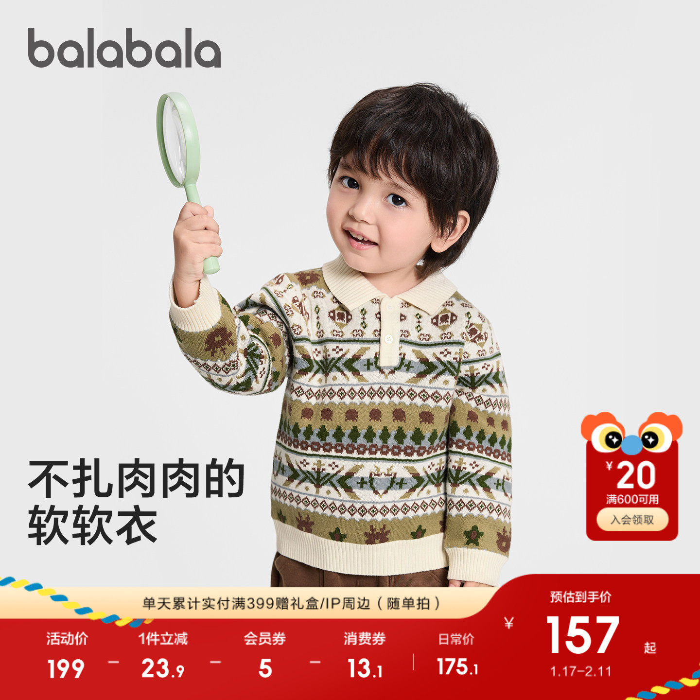 【商场同款】巴拉巴拉宝宝毛衣男童提花针织衫秋冬2025新款套头衫