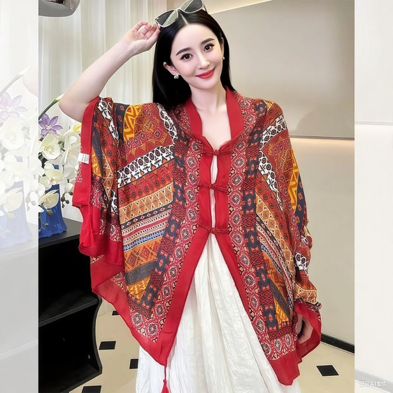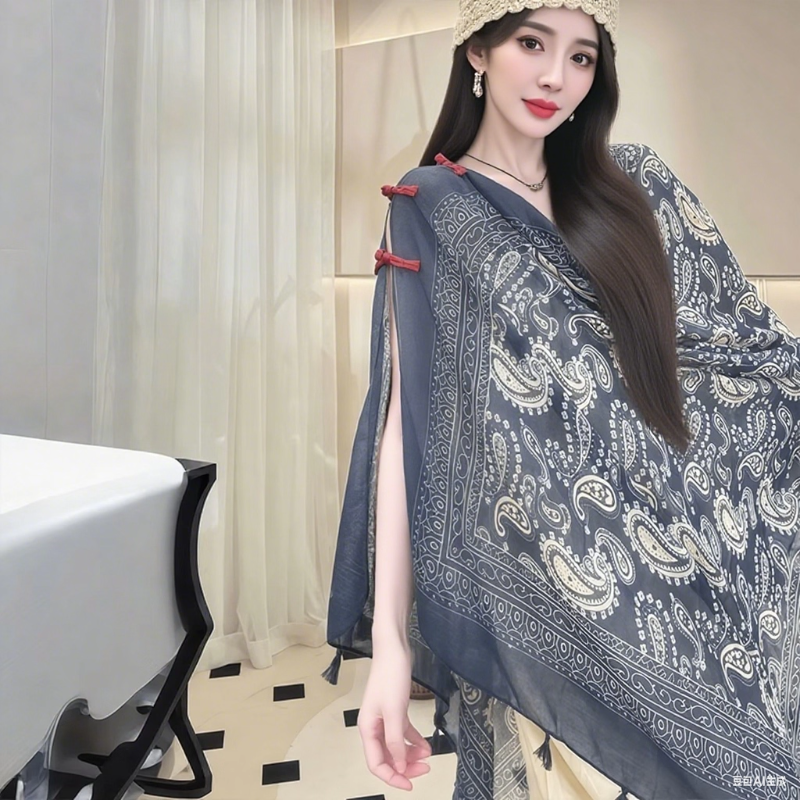 新款民族风披肩女外搭云南新疆西北旅游草原沙漠防晒头巾丝巾围巾