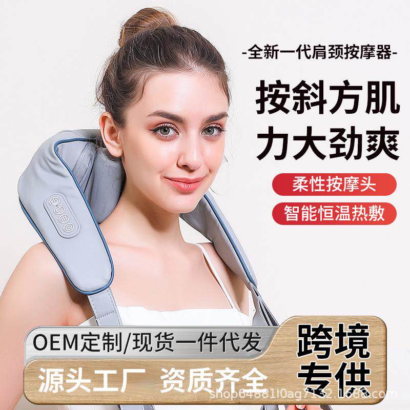 颈椎按摩器斜方肌按摩仪按压揉捏机械式疏通肌肉按摩便携充电披肩