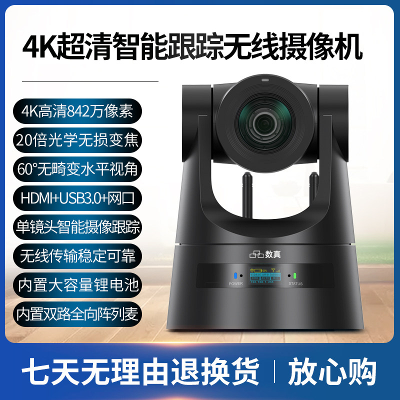 数真4K高清AI智能跟踪无线摄像机TCK800M内置双阵列麦克风锂电池