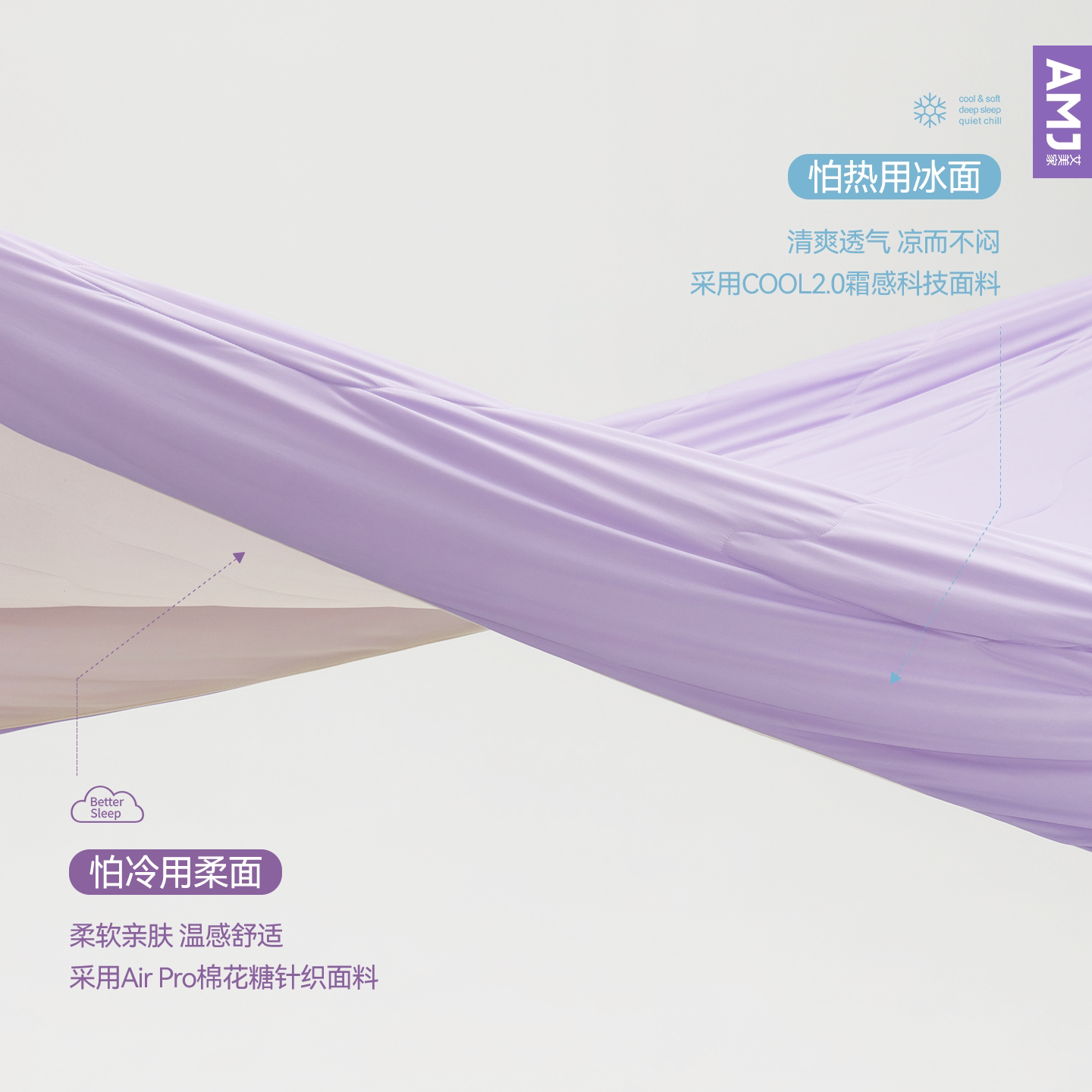 AMJ冰柔双感夏凉被夏季艾美家空调薄被子被芯可水洗凉感被子透气