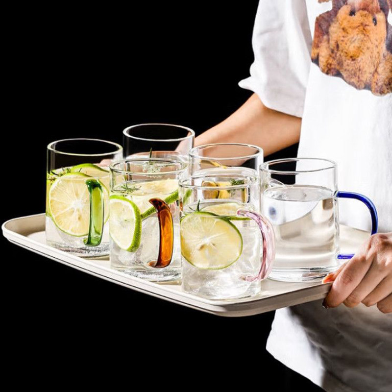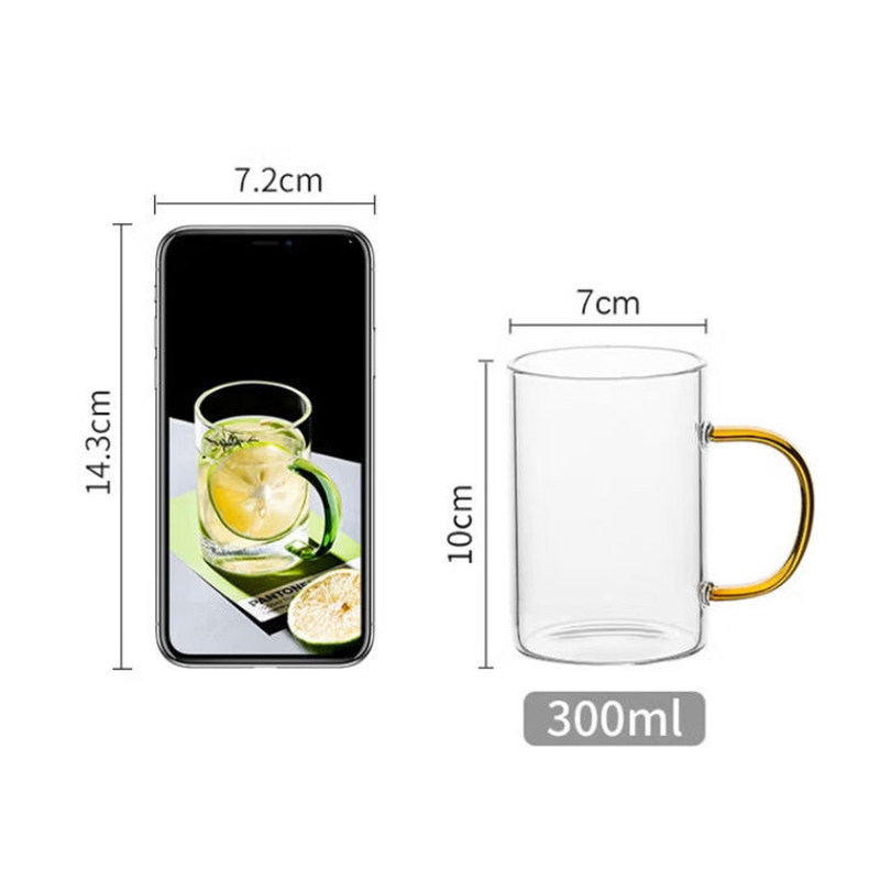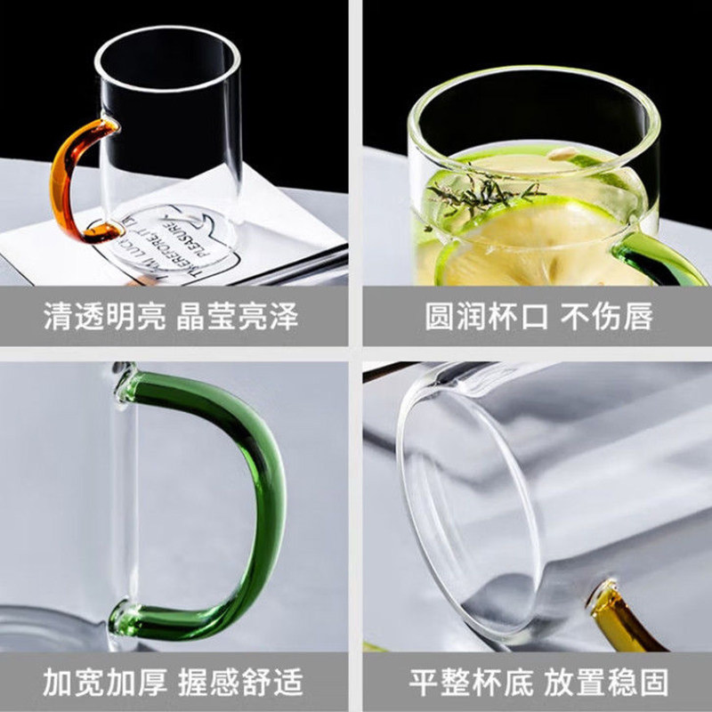 玻璃杯凉水杯咖啡杯透明茶杯果汁牛奶拿铁喝水杯子加厚防烫带把手