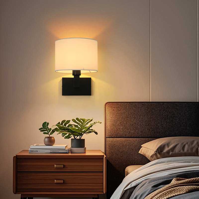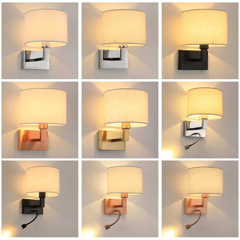 简约布罩壁灯 卧室布艺led床头阅读灯后现代宾馆酒店客房灯
