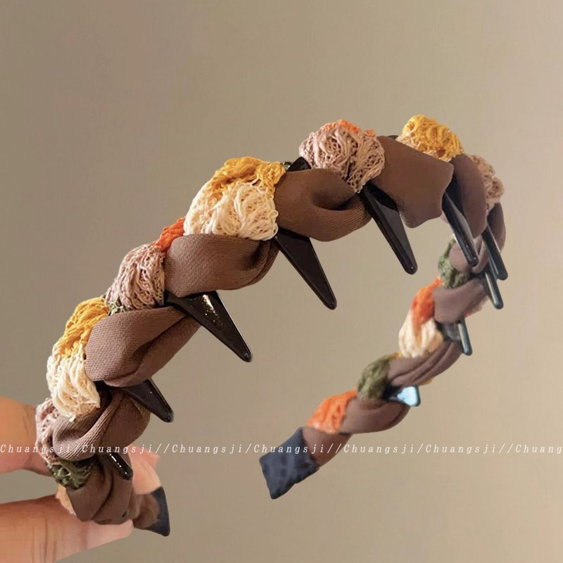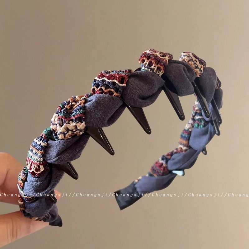 高颅顶带齿发箍女2025新款简约布艺百搭防滑发卡日常外戴头箍发捆