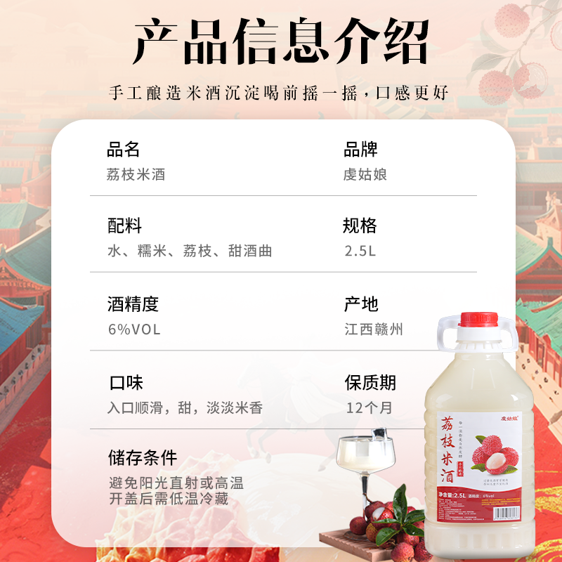 荔枝米酒正宗发酵果酒微醺女士低度自酿甜糯米醪糟汁手工酿造