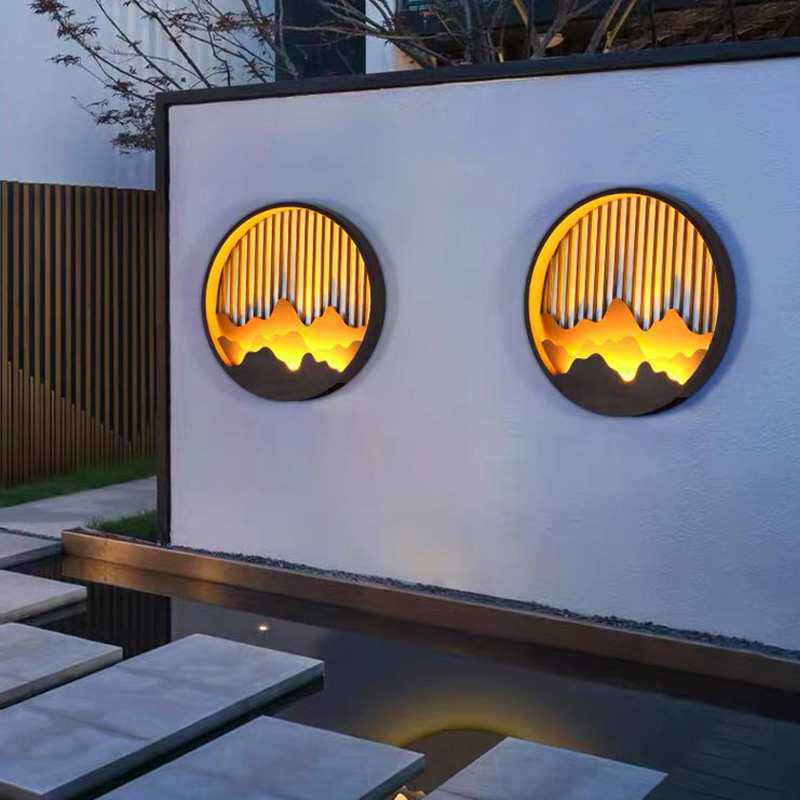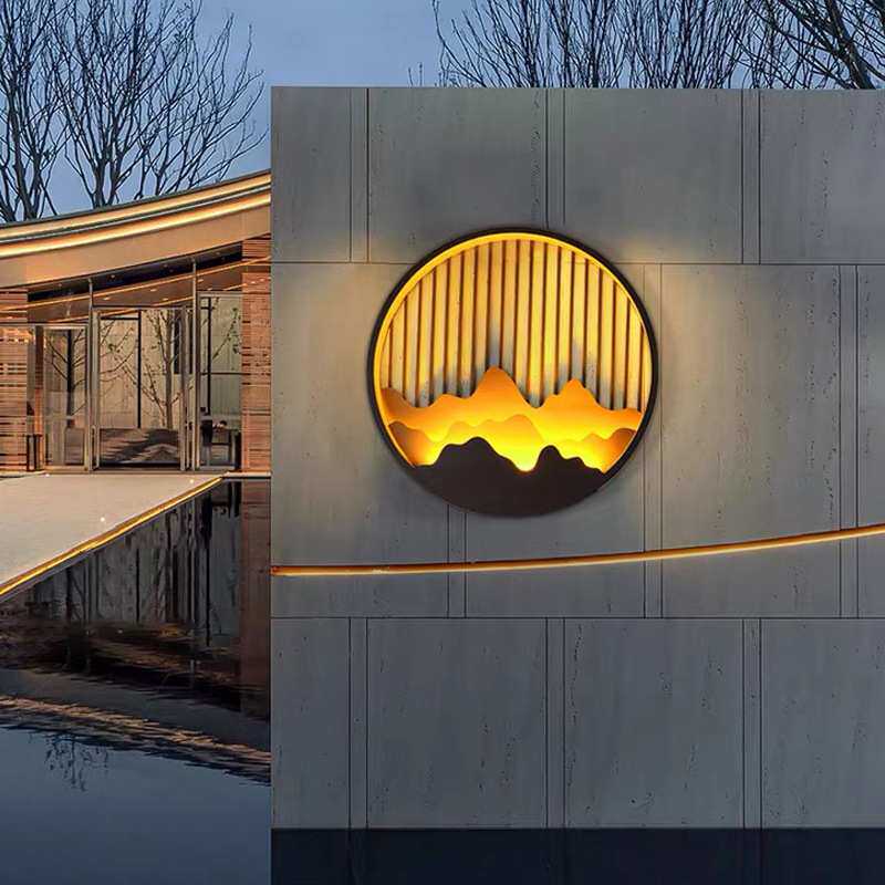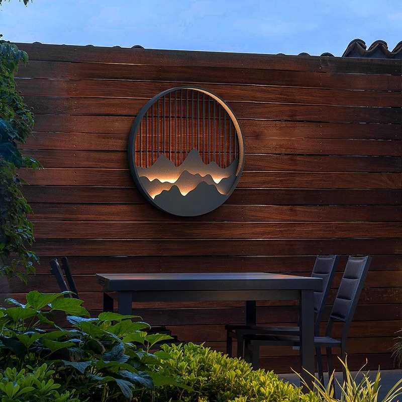 LED新中式山水壁灯户外别墅庭院子影壁墙背景墙壁画禅意装饰造景