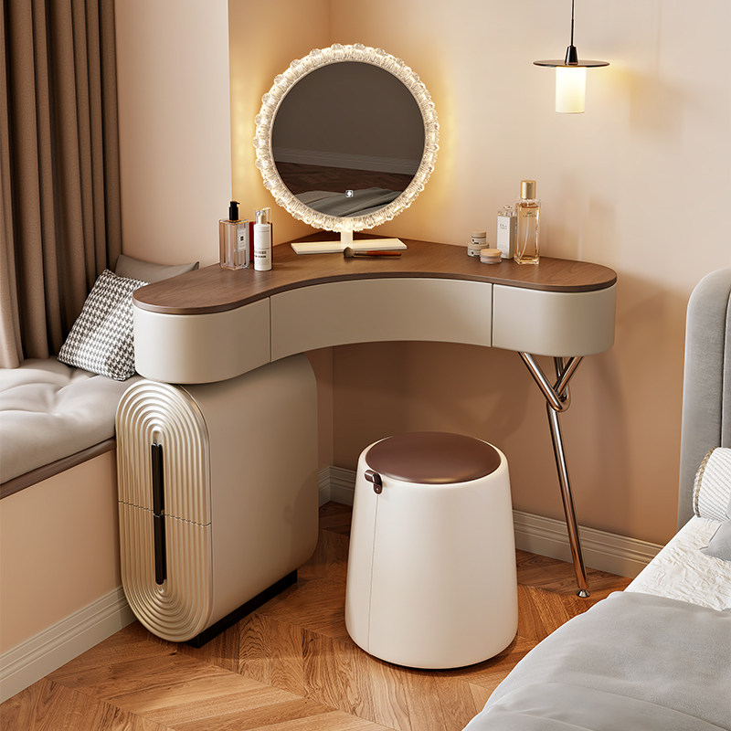 中古风实木转角梳妆台收纳斗柜一体卧室小户型墙拐角化妆桌焕新补