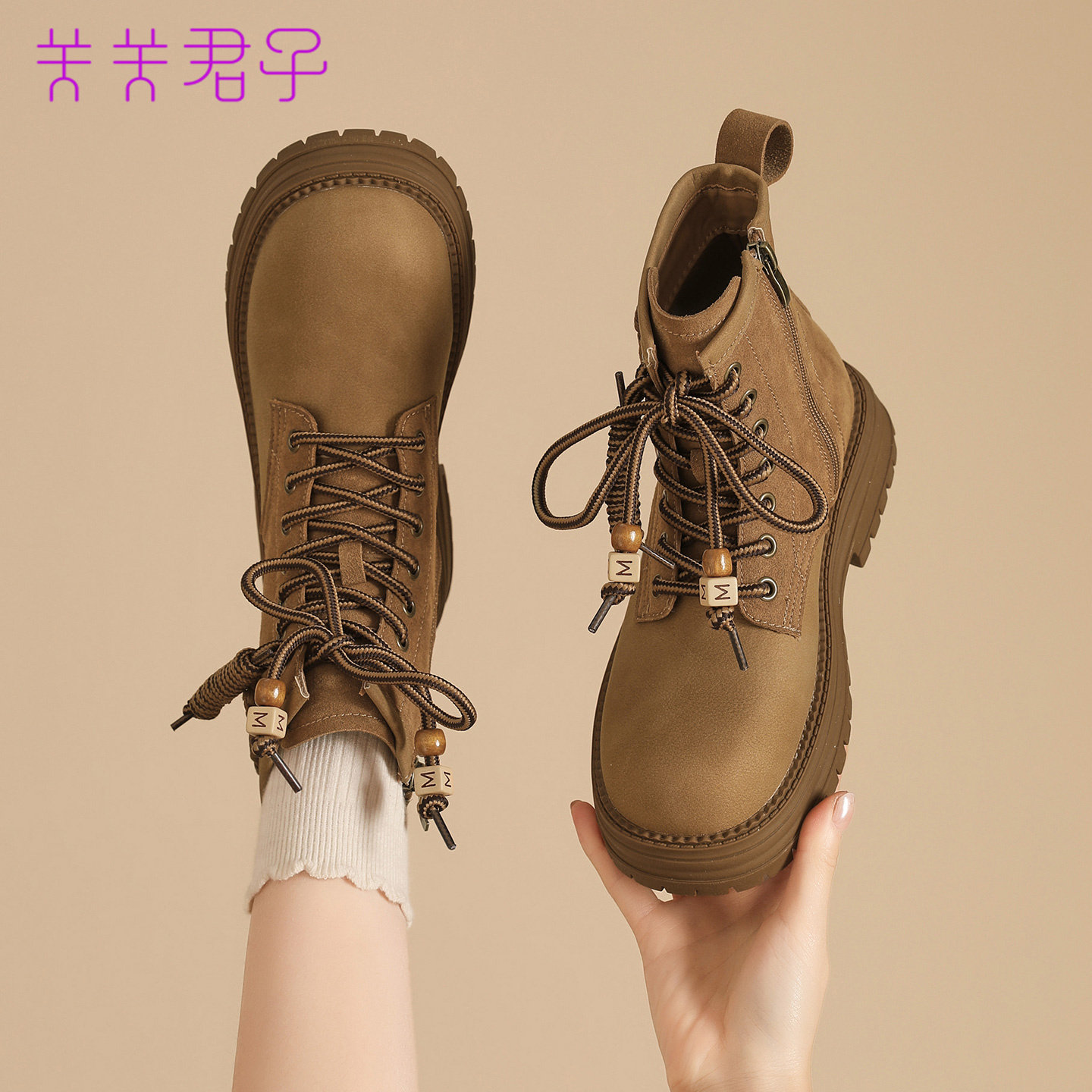 真皮版~棕色马丁靴女2025秋冬新款厚底增高短靴小个子英伦风靴子